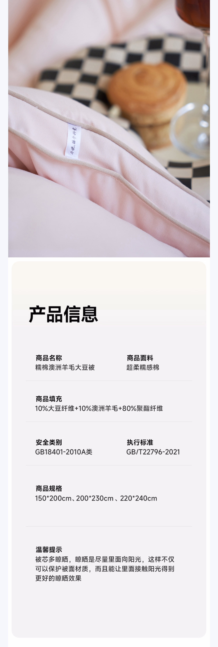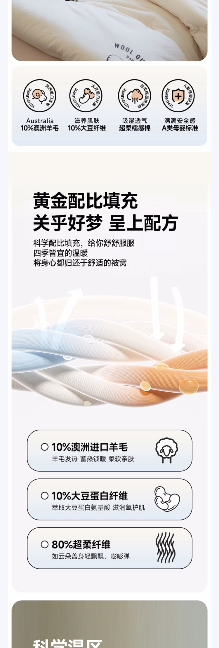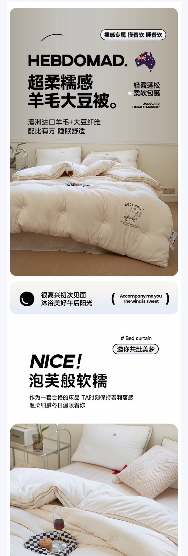 【糯棉澳洲羊毛大豆被】10%澳洲羊毛 10%大豆纤维 轻盈蓬松 柔软包裹