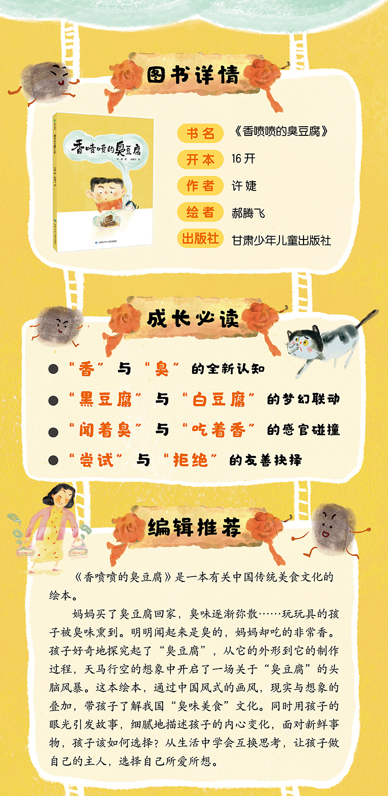 香喷喷的臭豆腐 中国美食文化启蒙精装硬壳绘本 让孩子了解中国传统美食文化 培养儿童勇于尝试的精神