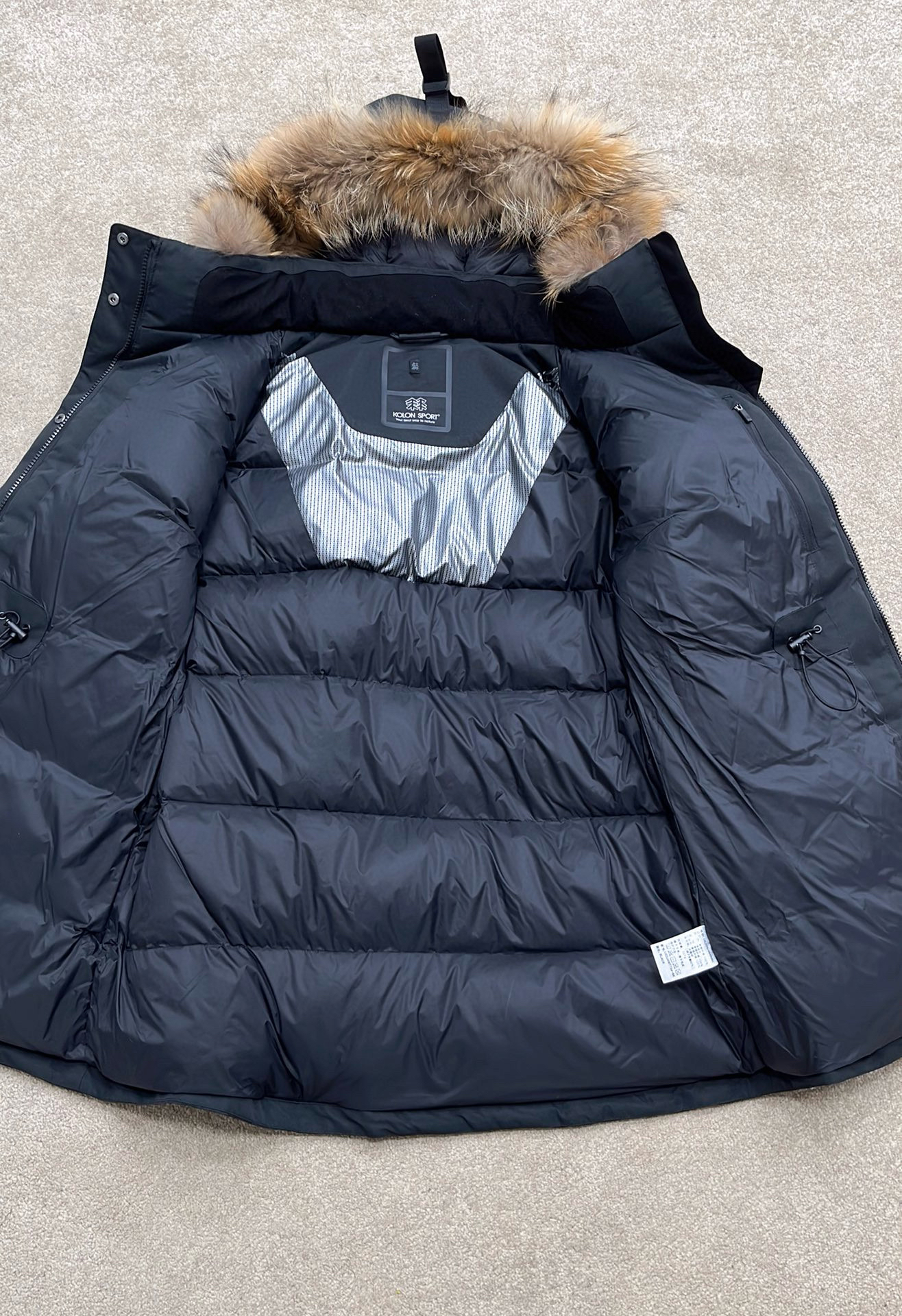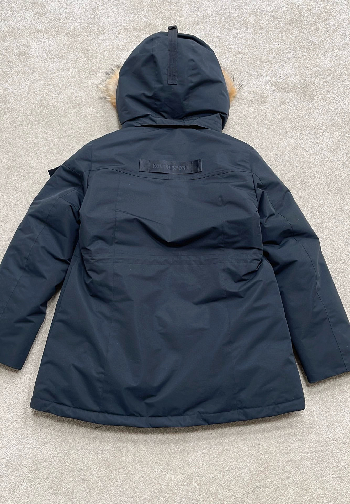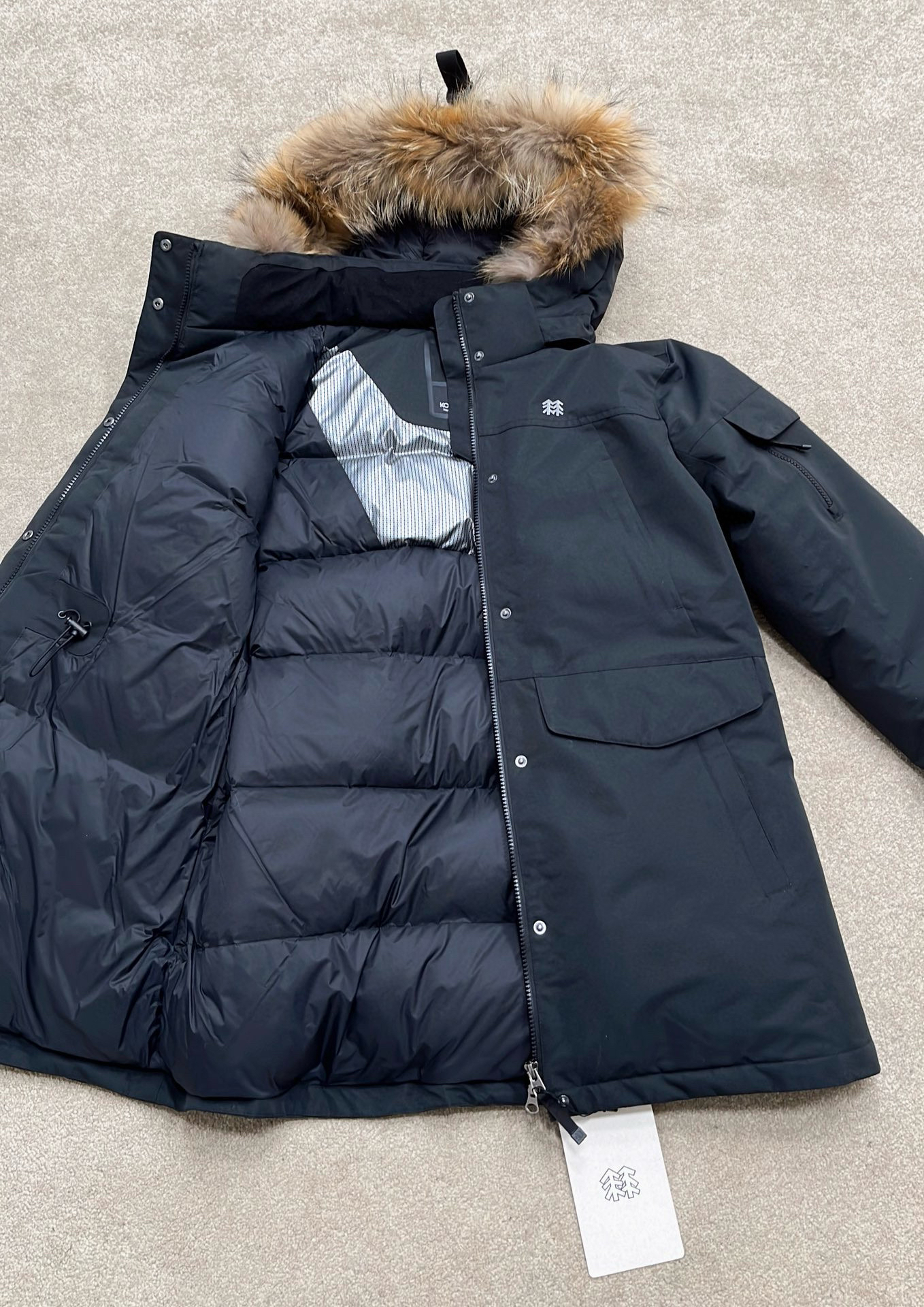 很像大鹅的版型对不,但是比大鹅轻盈许多许多嗷。貉子毛领丰盈蓬又松保暖。外防层雨防风,透气轻盈的专用材质。