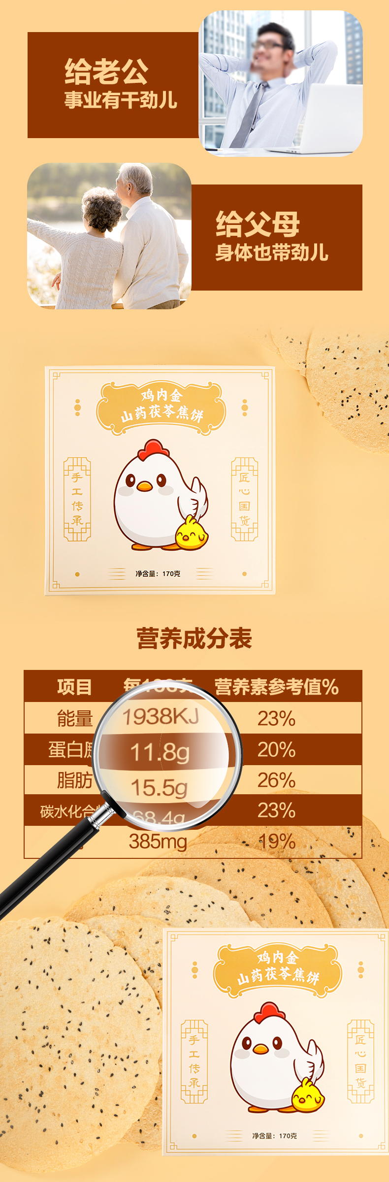 柒浠鸡内金山药茯苓焦饼 古法制作 真材实料酥香薄脆 老少皆宜 170g/盒