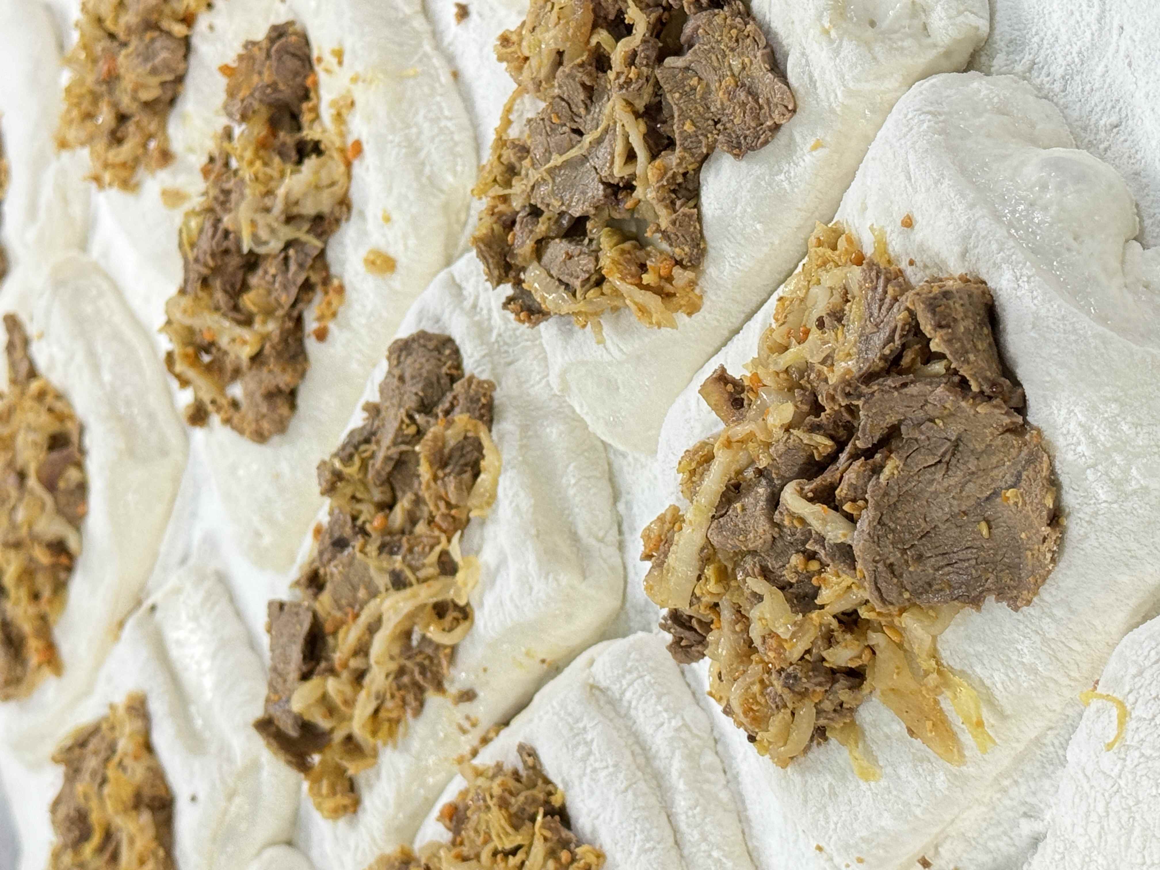 每一个都是满满的馅料,吃的过瘾,饱腹感十足,一口咬下,酥脆的外壳,咔嚓一声,紧接是内力柔软的面包体,饱饱地吸满了酸奶和牛肉的汤汁,酸、香、嫩、脆,谁吃谁喊绝