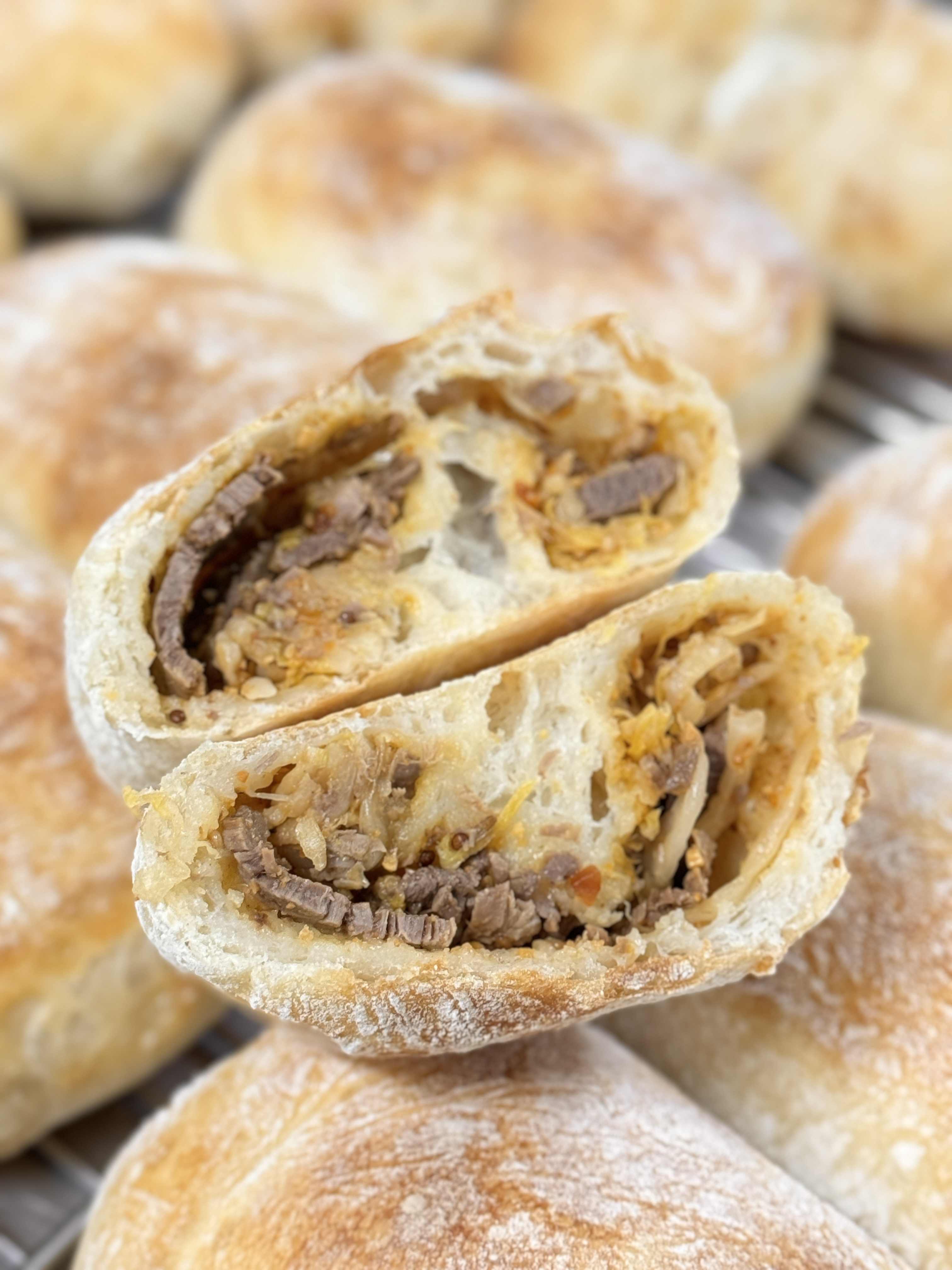 外皮酥脆,内里软糯,酸菜的酸爽完美中和了牛肉的咸香,每一口都是扎实的馅料,整个恰巴塔呈现出非常美妙的滋味,好的面包就像一顿饭,有碳水、有蛋白质、也有膳食纤维,一整个营养全面,饱腹无负担,好吃的同时也健康
