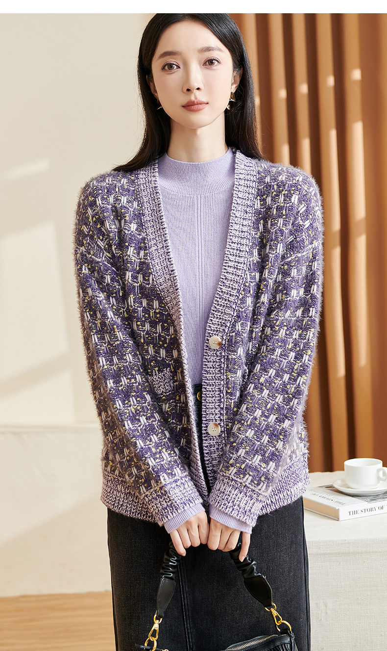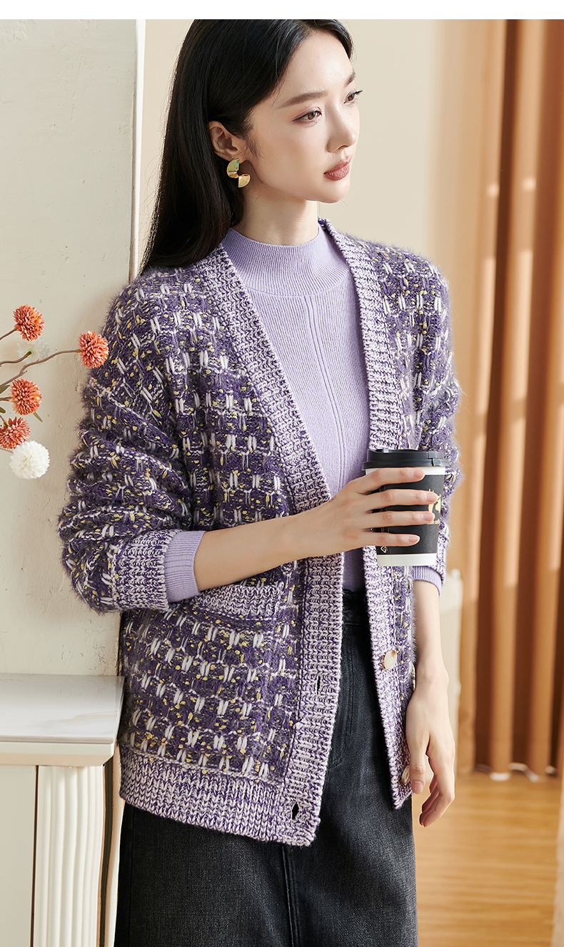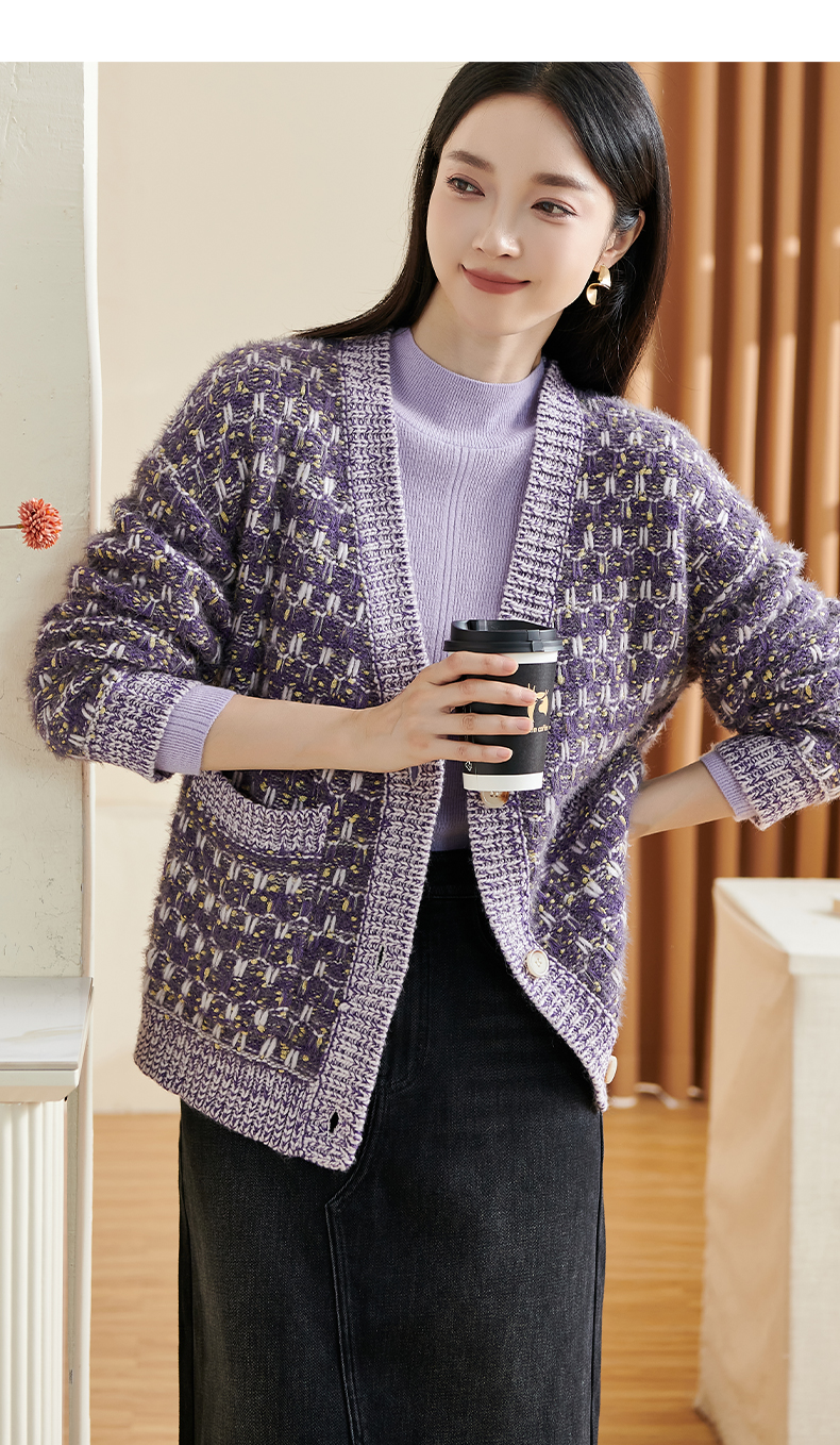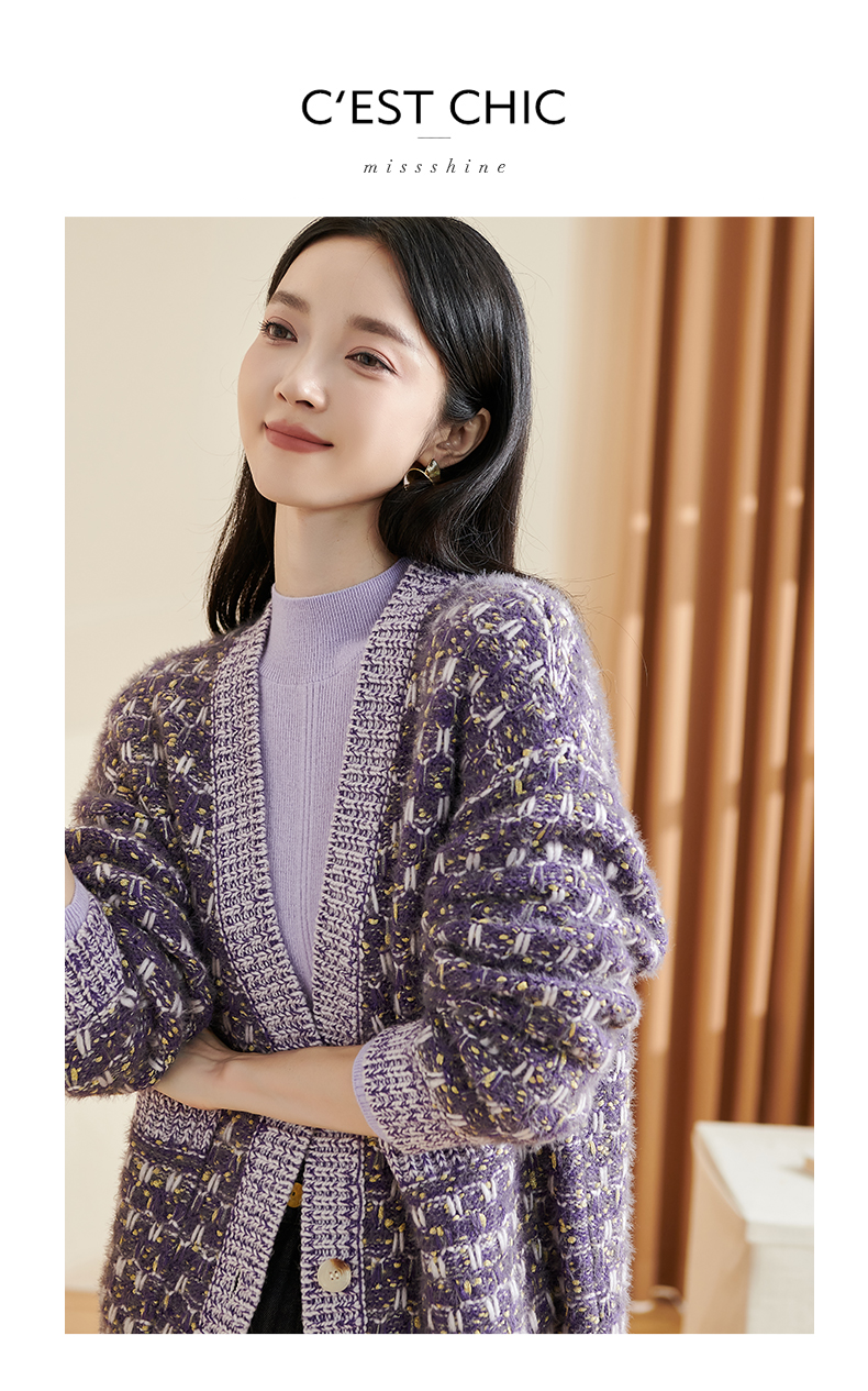 剩XL/XXL 米思阳新款温柔慵懒风针织衫混纺抗起球开衫宽松外套2349