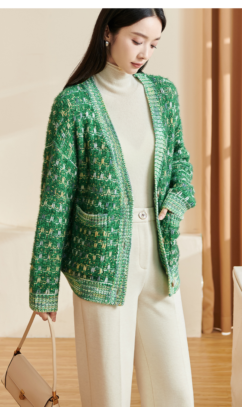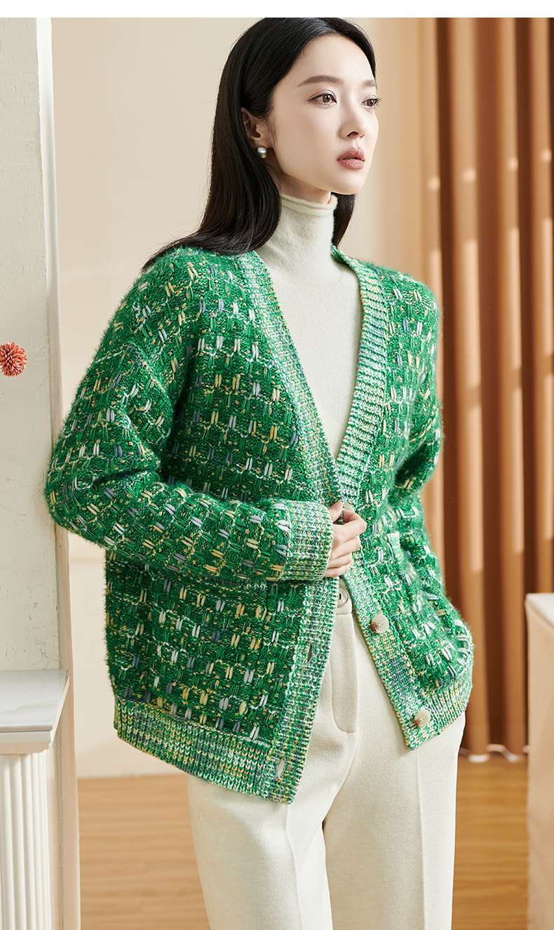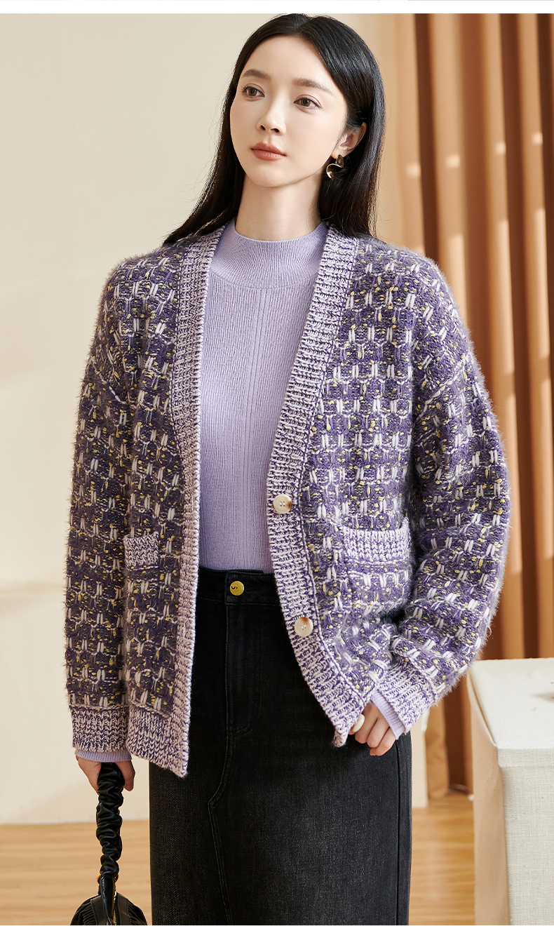 剩XL/XXL 米思阳新款温柔慵懒风针织衫混纺抗起球开衫宽松外套2349
