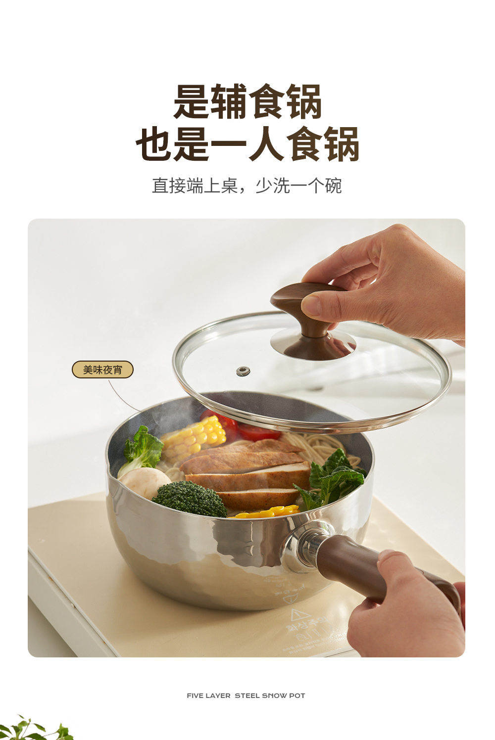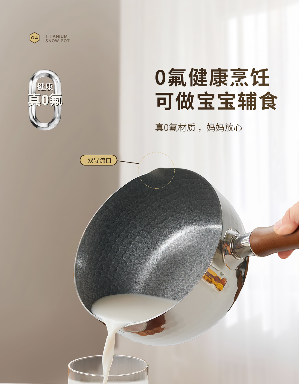 kimscook钛雪平锅无涂层奶锅不粘锅小锅一人食婴儿辅食锅煮泡面锅