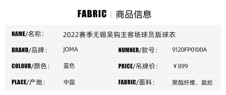 SFS正品 2022赛季中乙无锡吴钩足球俱乐部主场客场门将球迷版球员版球衣