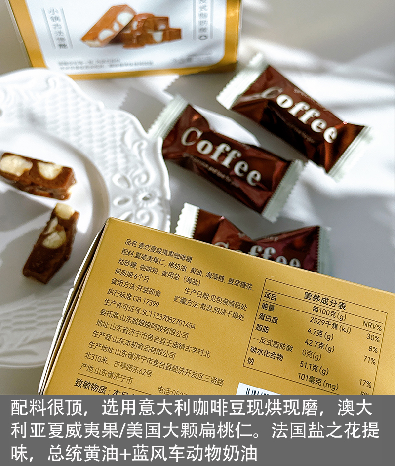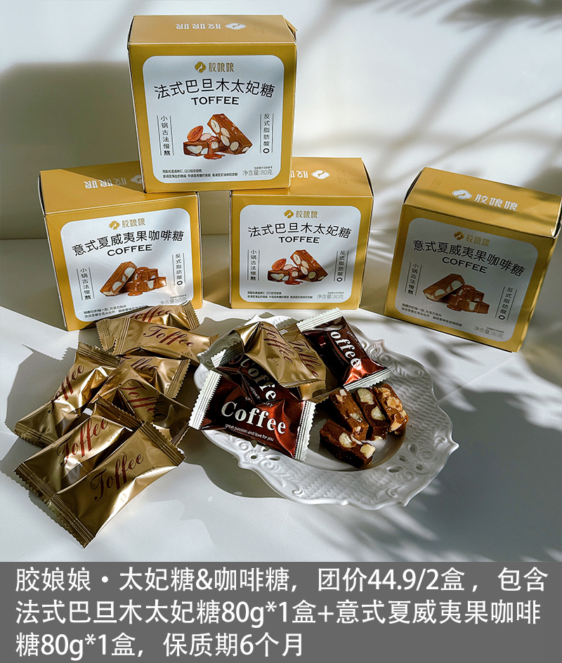 【福利社专属】胶娘娘巴旦木太妃糖夏威夷果咖啡糖 80g/盒+意式夏威夷果咖啡糖80g*1盒