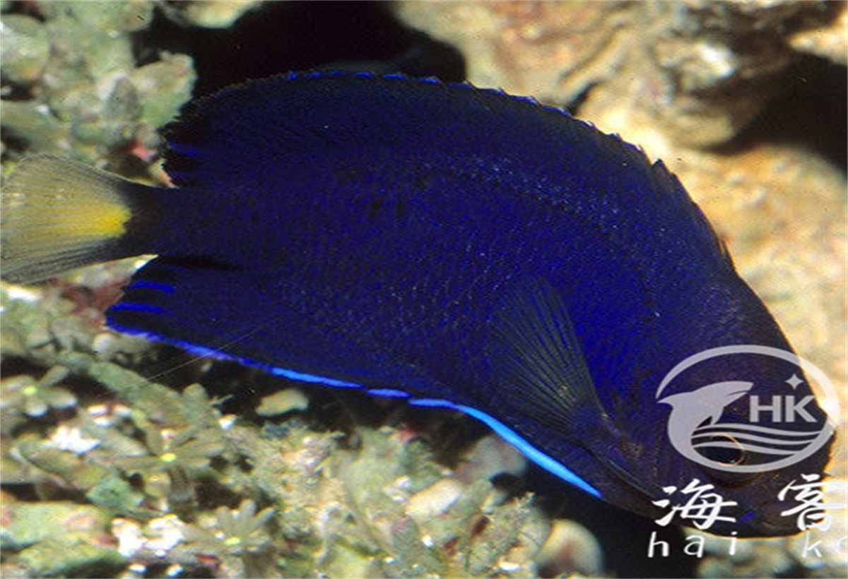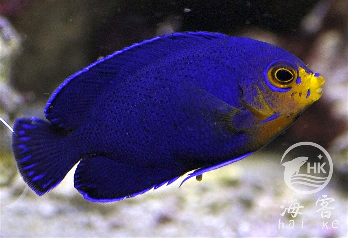 小蓝仙。在神仙鱼家族中是最小的一员,通常长不到5厘米。身体和头部大部分都是深蓝色。
