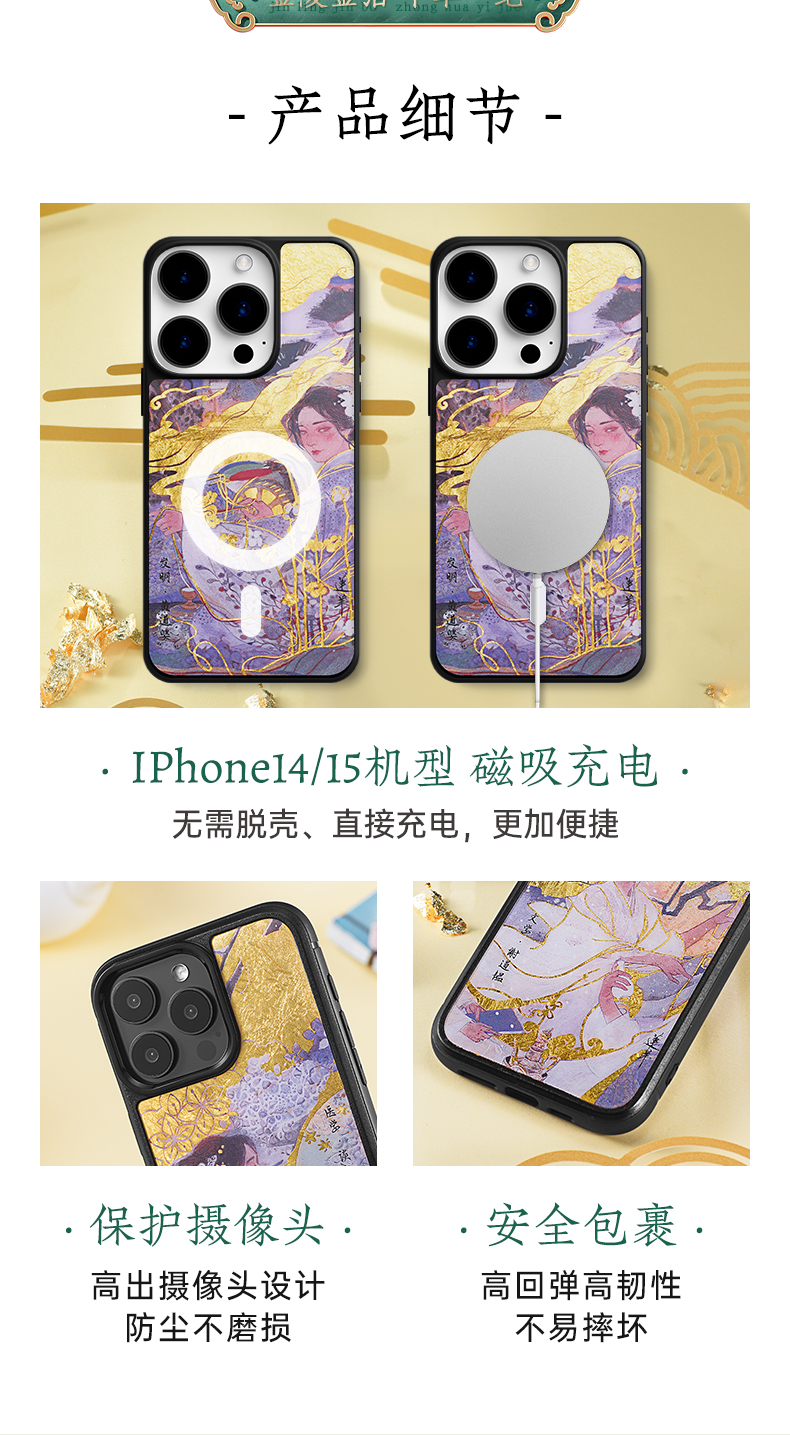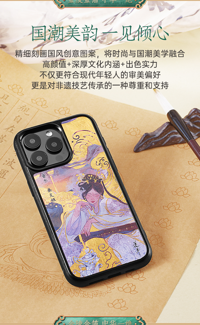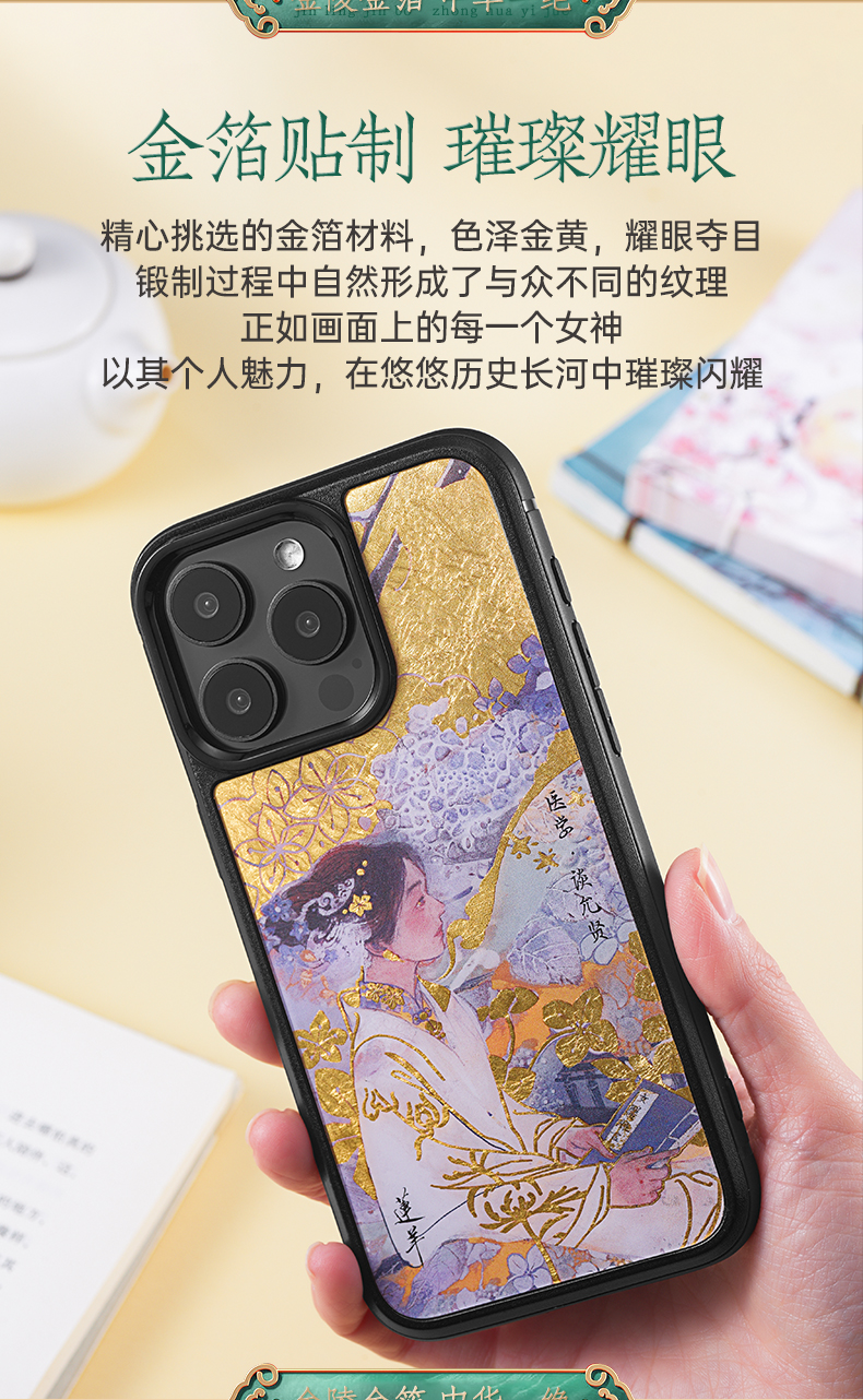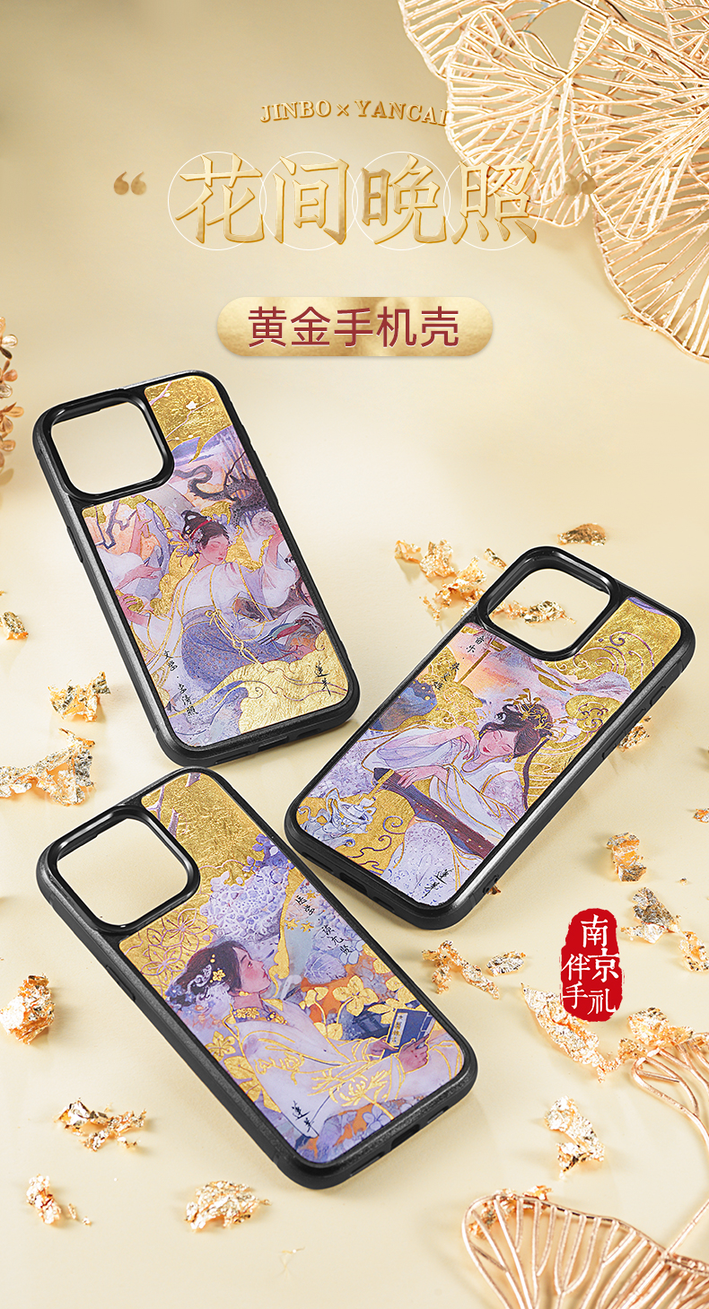 金陵金箔莲羊国风黄金手机壳适用于华为mate60pro苹果iPhone15promax新款14磁吸艺术家原创国潮高级感定制