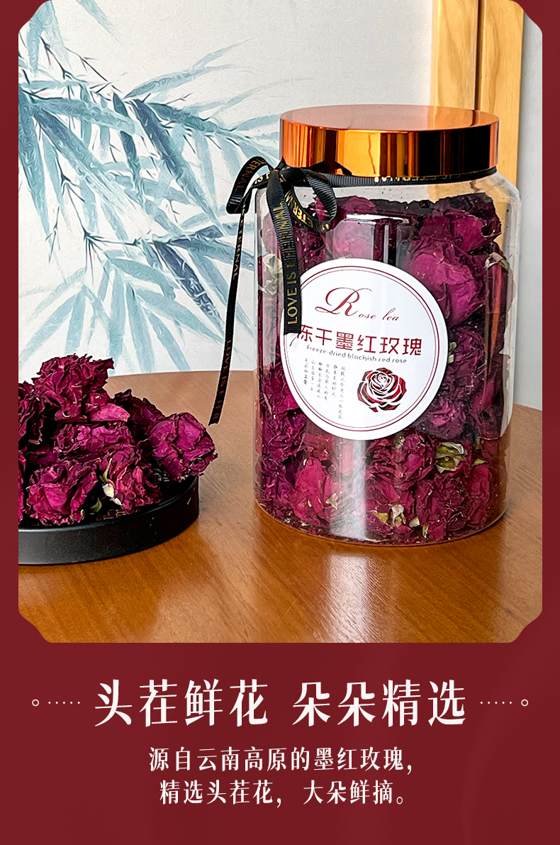 【新品】普滇丨云南墨红玫瑰 冻干玫瑰花茶 重瓣红玫瑰 精选头茬大朵玫瑰 100g