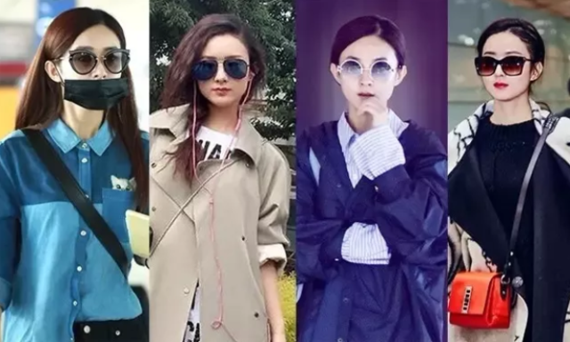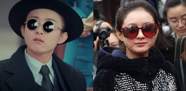 以大家很爱的赵丽颖为例吧,她是典型的小圆脸没错,四款不同款式的太阳镜中,是不是她戴圆形款最显脸圆?