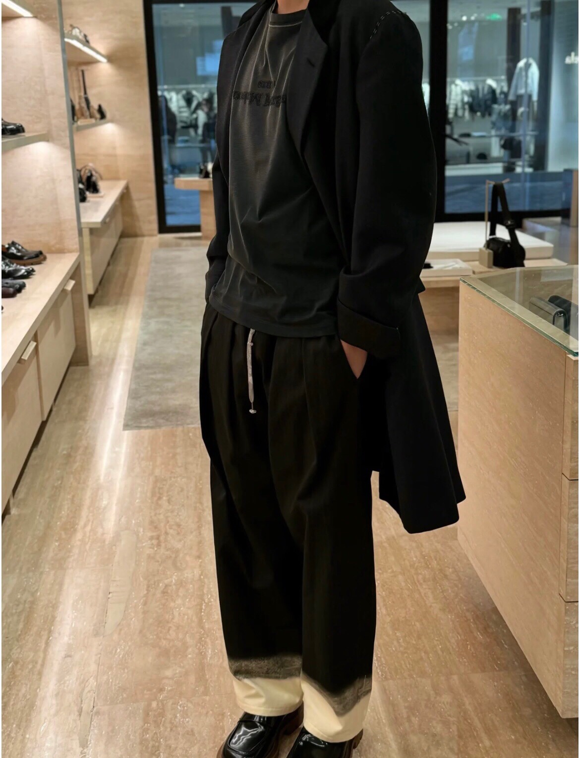 马吉垃官网不太好用,没找官网售价图,网上找了几张官网模特图,这个模特上身的是棕色款,我们的货是黑色款