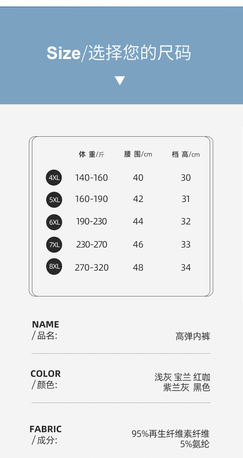 【100元5条,需拍5条】高弹力大码内裤顺滑舒适加肥加大男士平角四角内裤【拍1条的 默认颜色随机搭配】