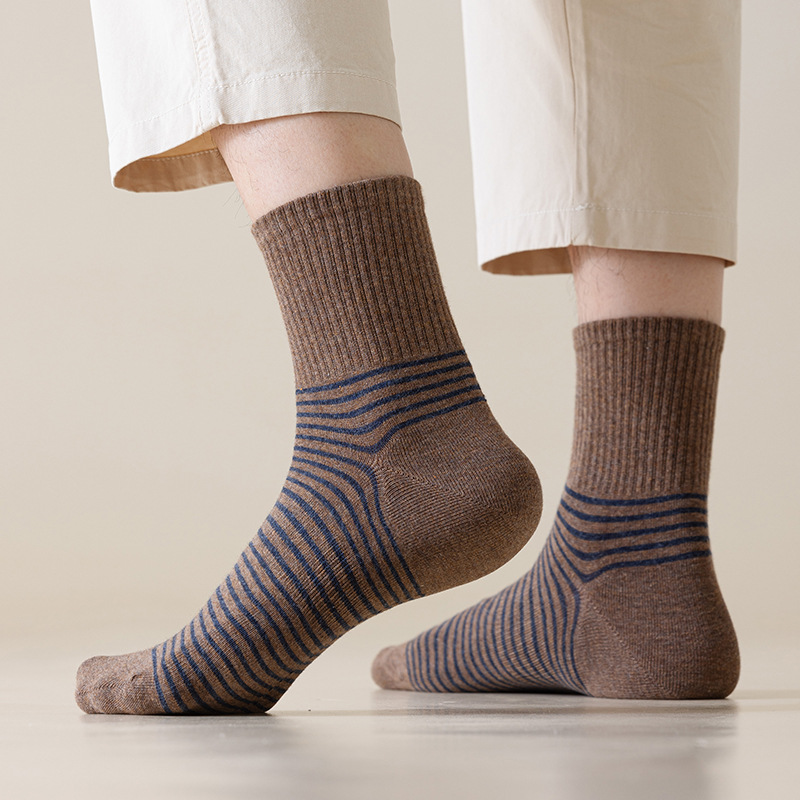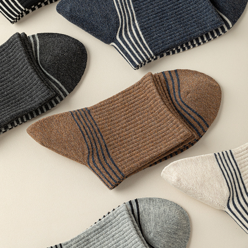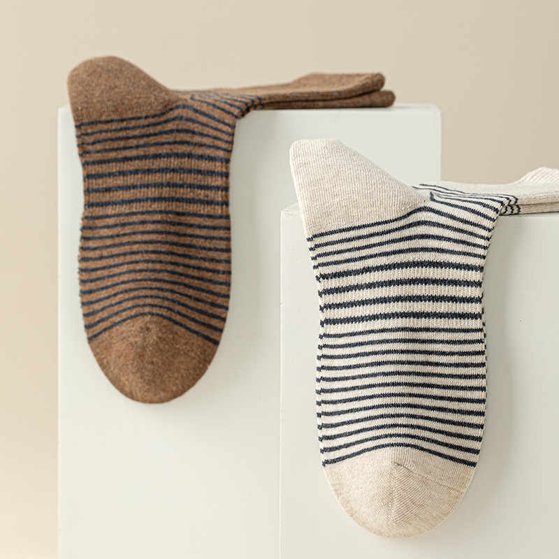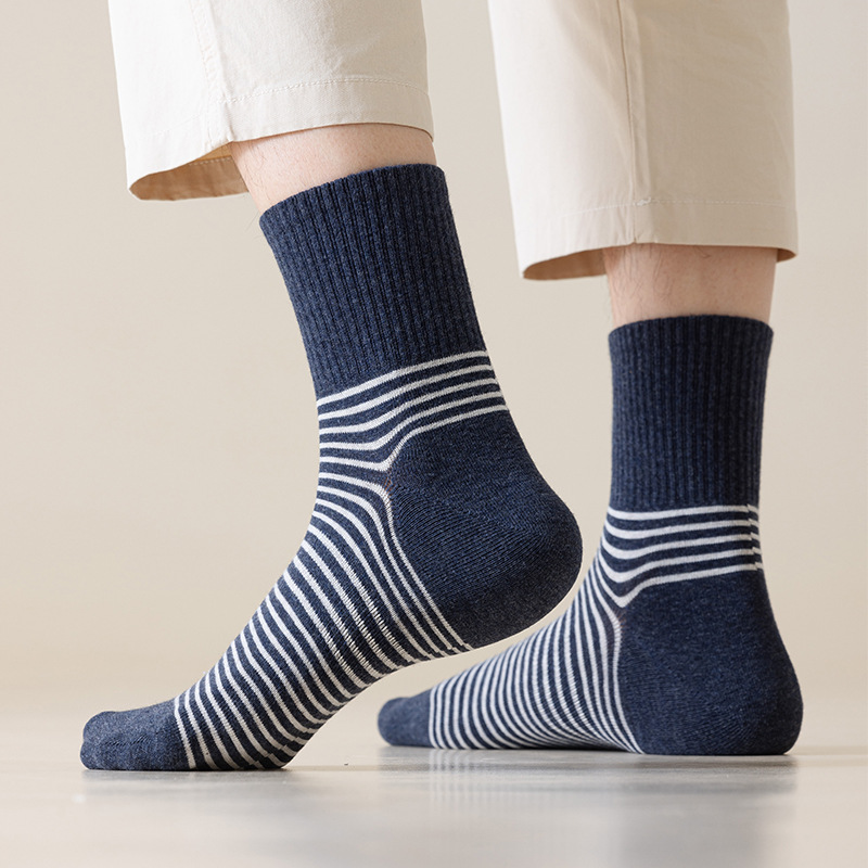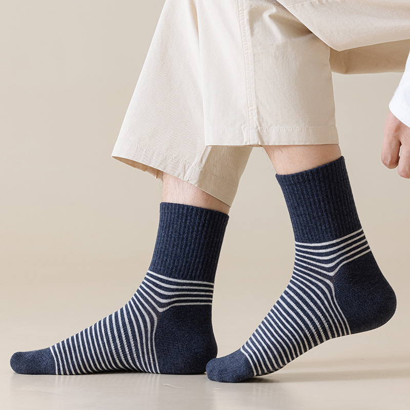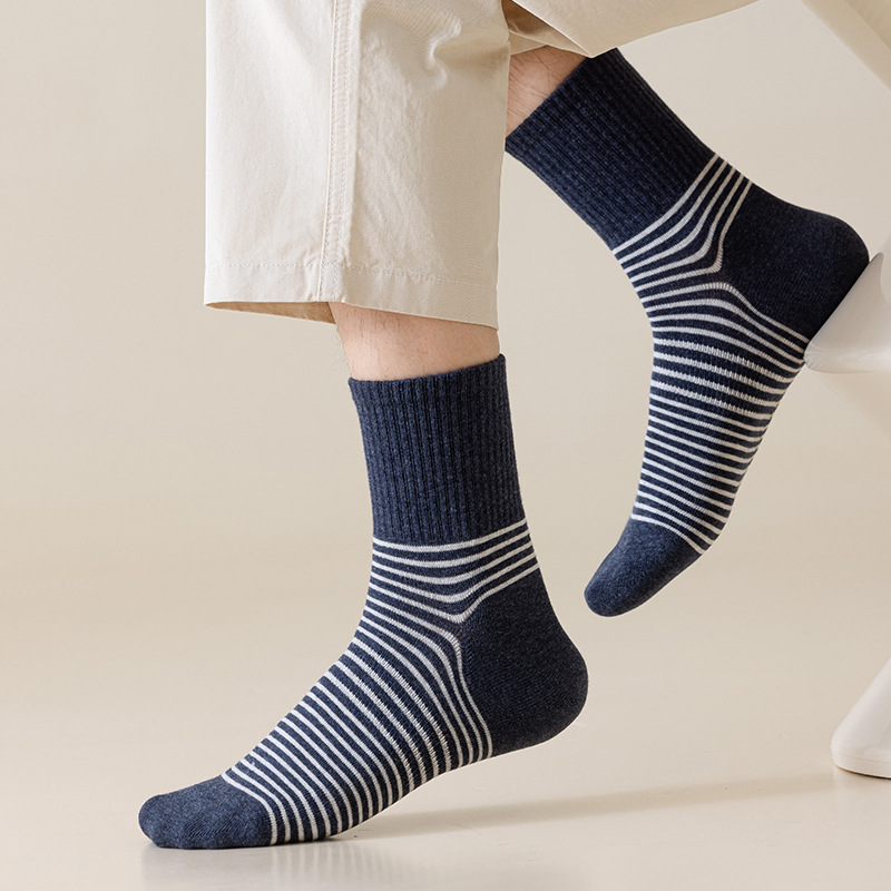 【直角条纹男精梳棉袜】男士直角长袜条纹秋冬厚款袜子高含棉长筒袜无骨保暖