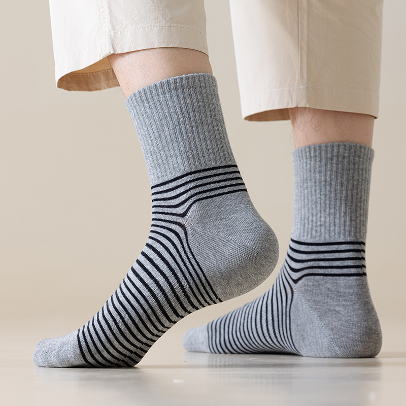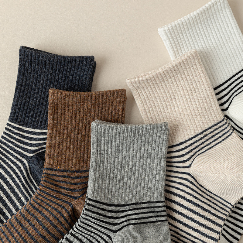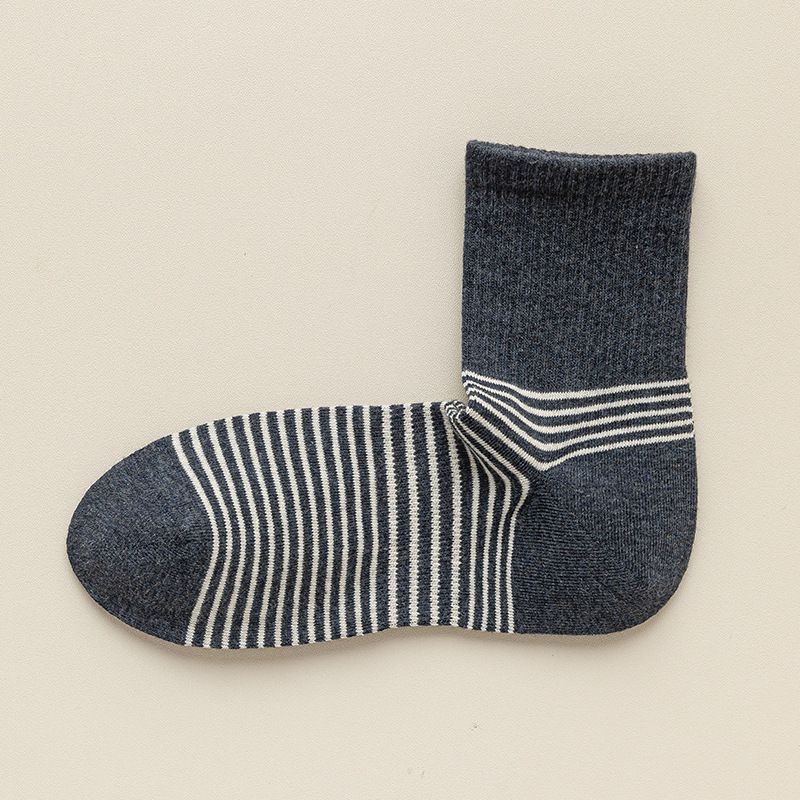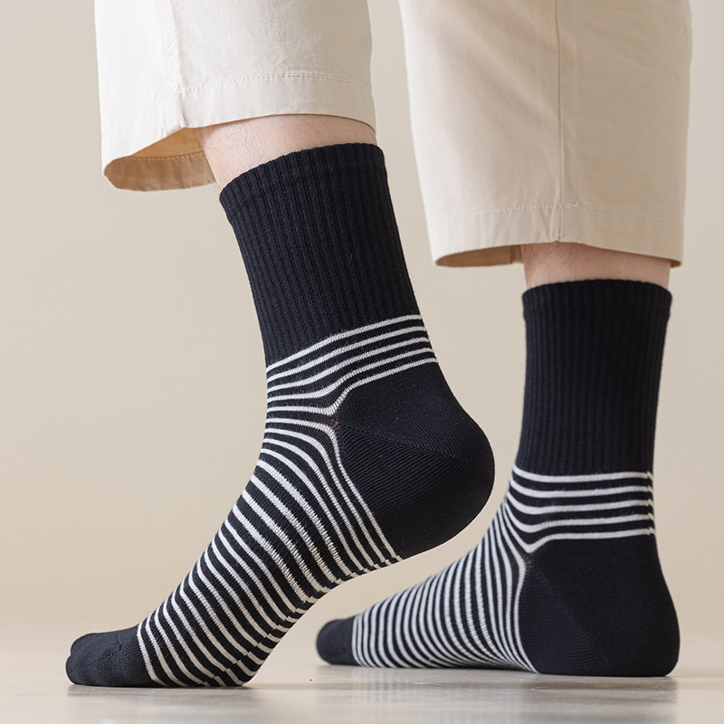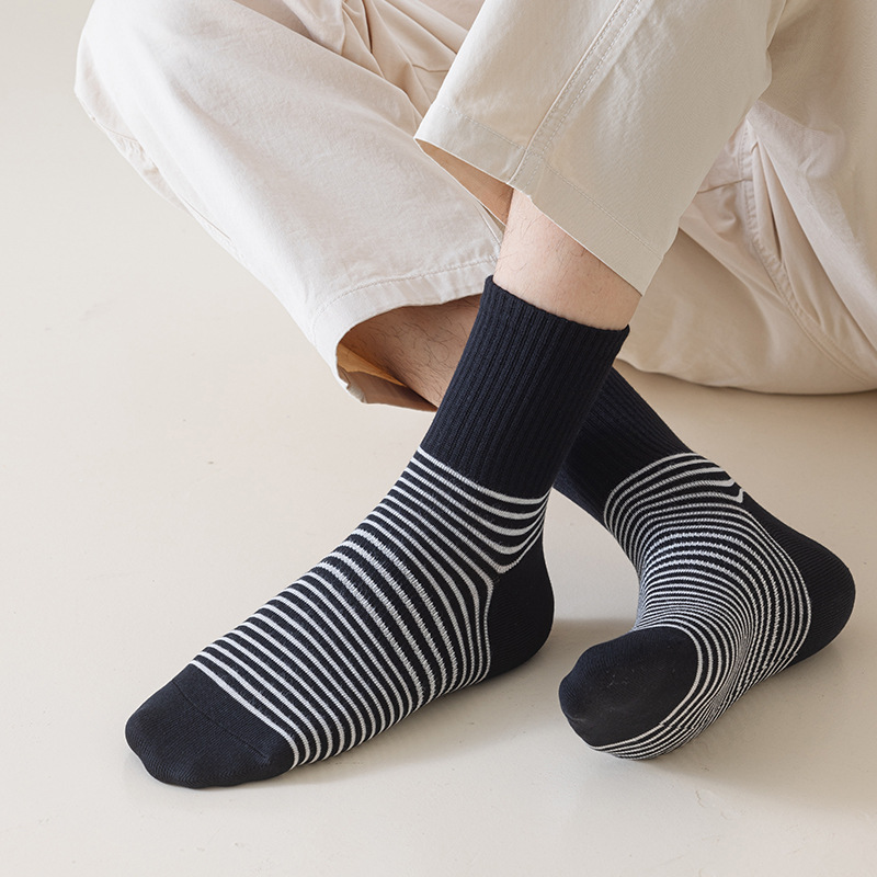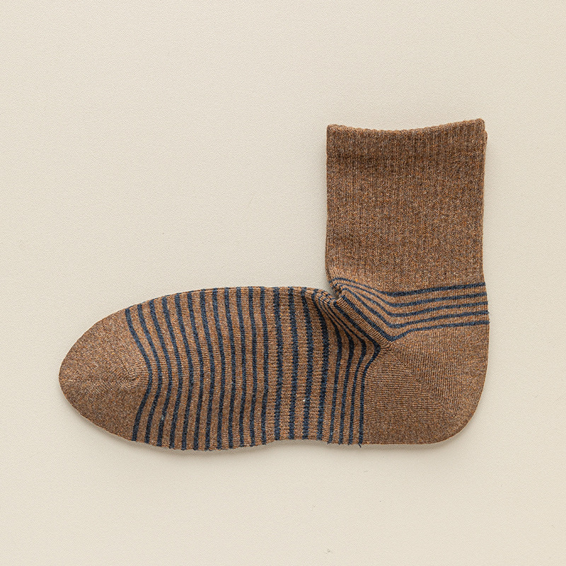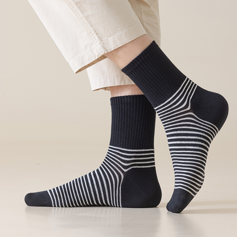 【直角条纹男精梳棉袜】男士直角长袜条纹秋冬厚款袜子高含棉长筒袜无骨保暖