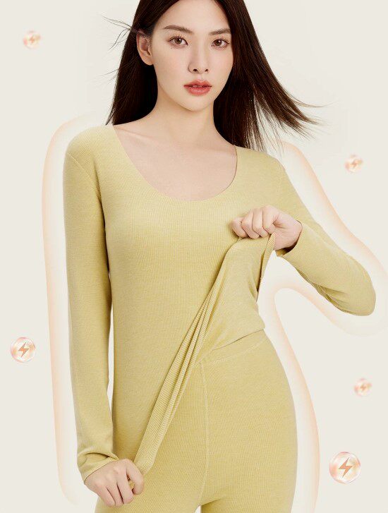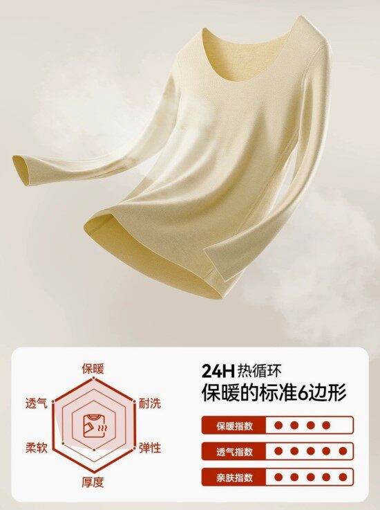常规秋衣样式 微包身版型 一片式剪裁 边缘不锁边 更贴合身形
