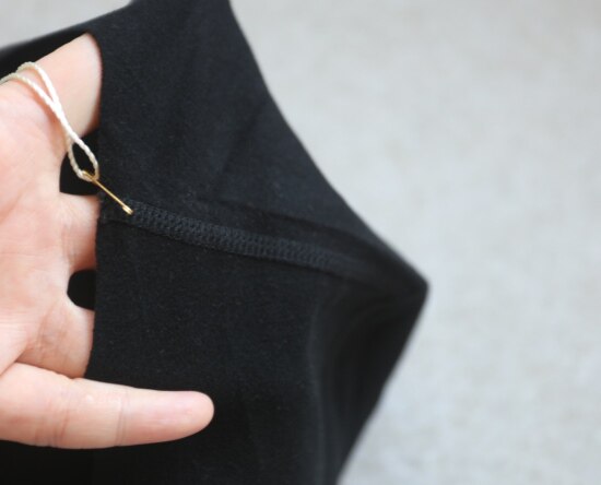 领口 宽度较大 但并不是很低 微收腰 底边微微小圆弧 整体是服帖在身上的