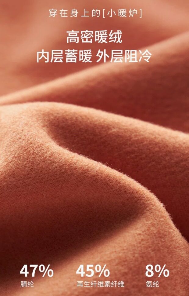咱这是双面德绒的 高科技腈纶膨体纤维 可将湿气转化为热能