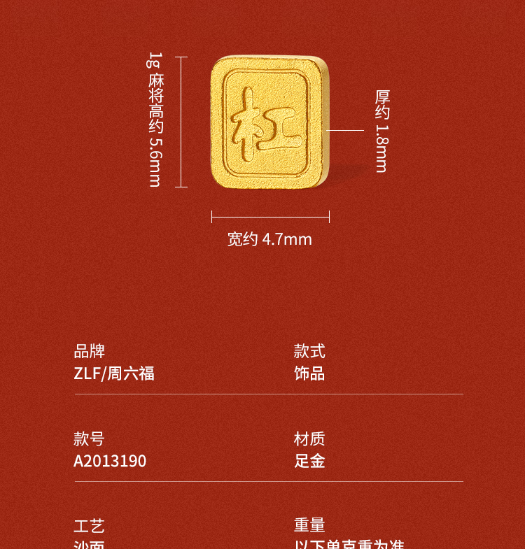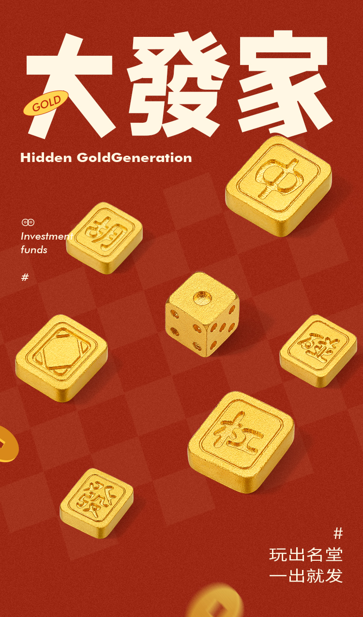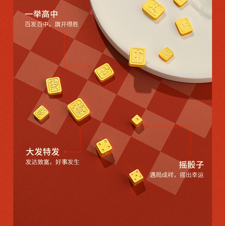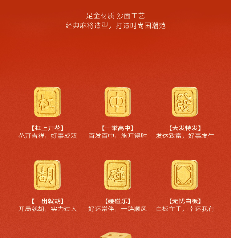 周六福投资金大发家实心足金国潮麻将黄金收藏送礼节日礼物