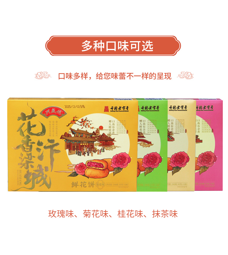 【新品上架丨抢先加购】兴盛德开封特产240g*4盒鲜花饼礼盒传统糕点