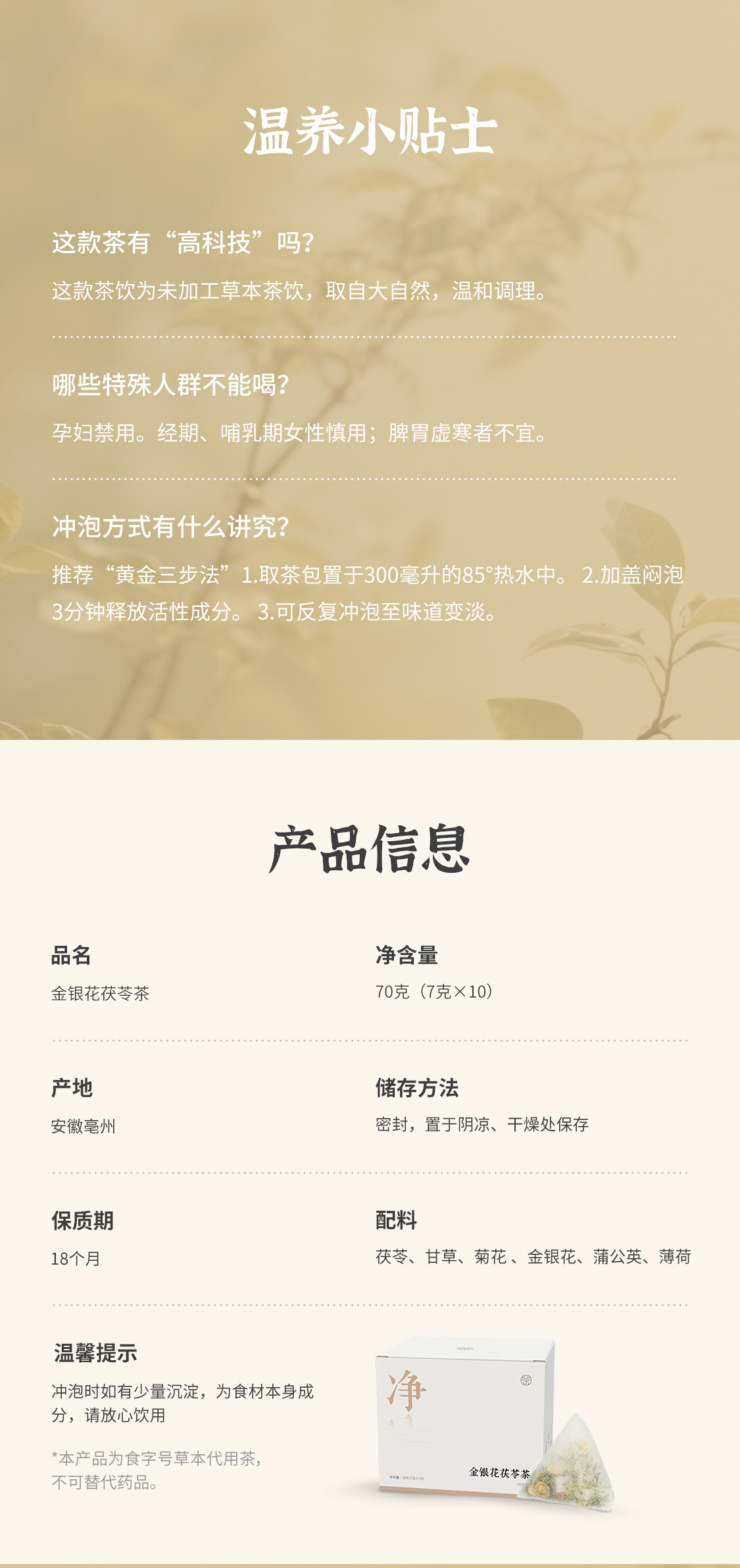 【金银花茯苓茶】清新平衡 舒缓燥热 温和降浊 纯正素颜肌茶饮 70g(7gx10包)zy