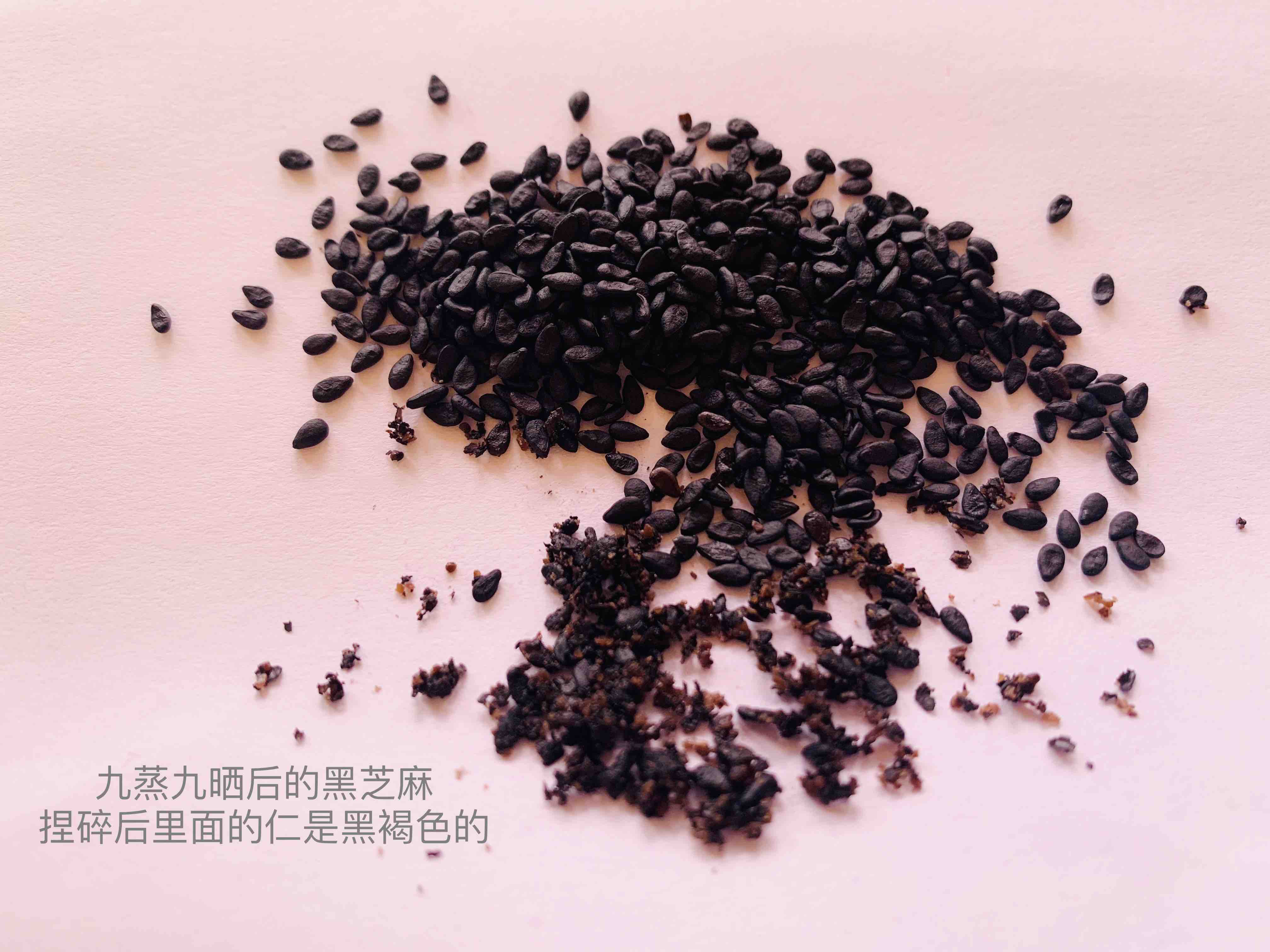 "芝麻三斗,蒸熟后晒干,淘去浮沫后再蒸再晒,如是者九次"。