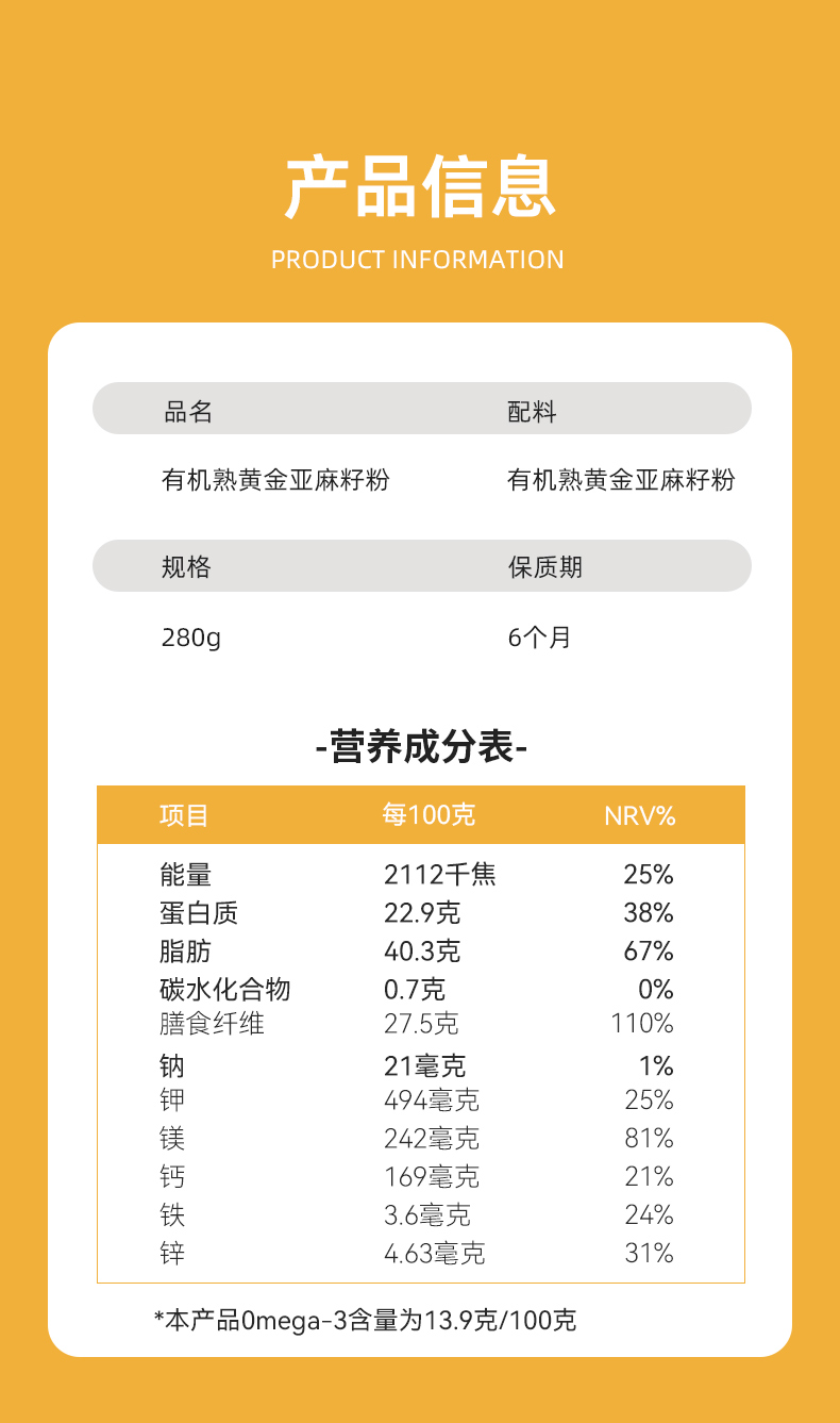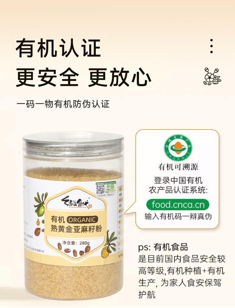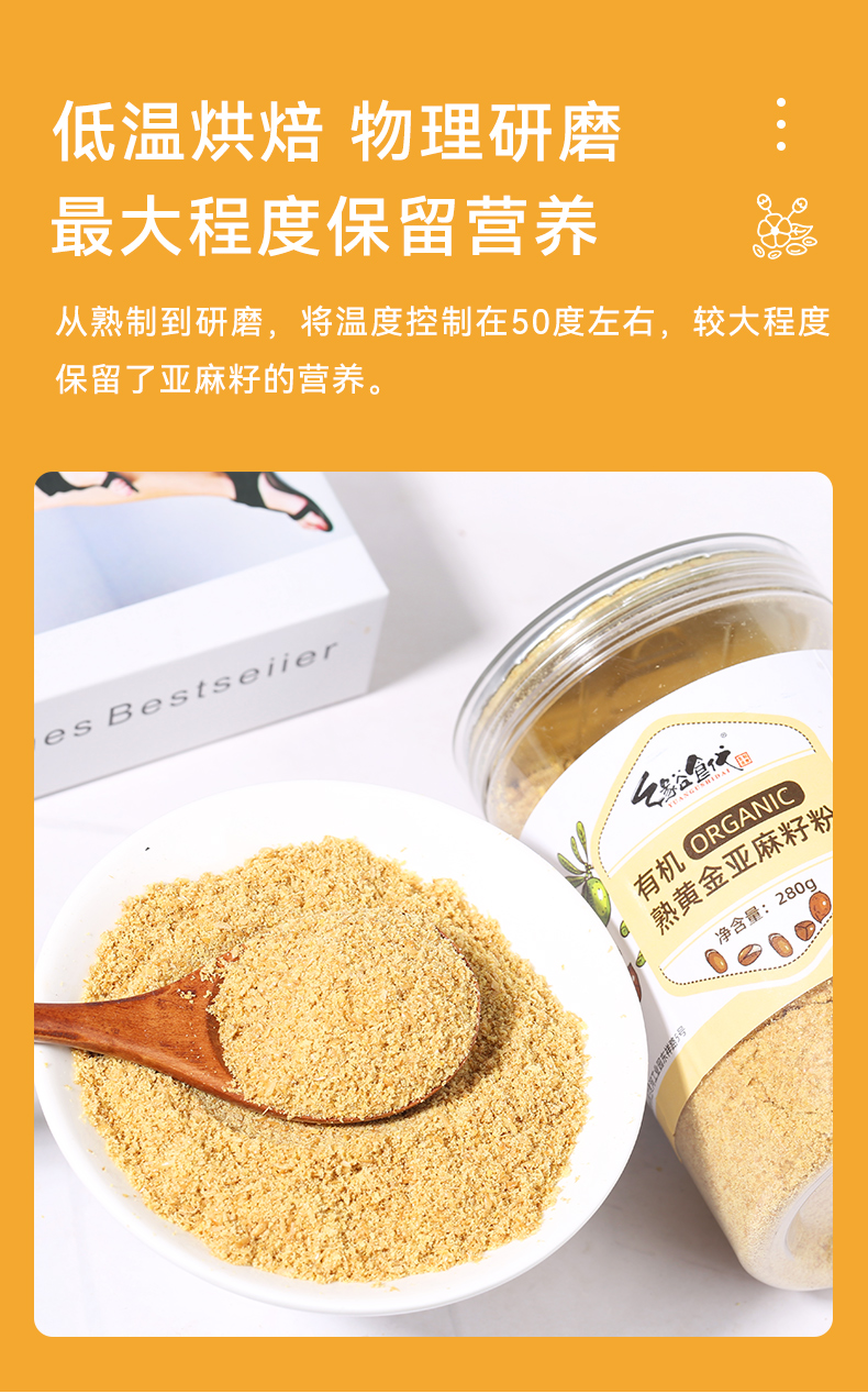 昔日印象熟金色有机亚麻籽粉280g瓶装杂粮高蛋白质高膳食纤维黄金亚麻籽