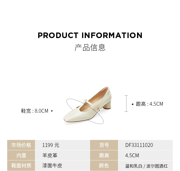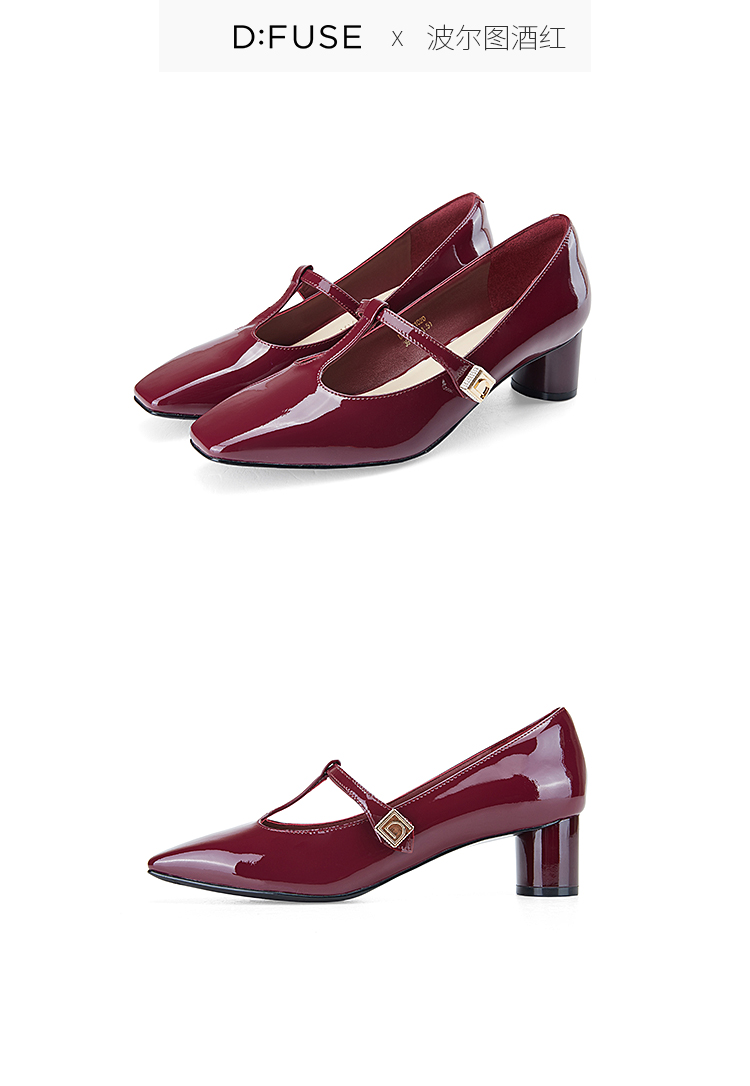 DFuse迪芙斯复古酒红法式小方头玛丽珍单鞋女漆皮百搭DF33111020