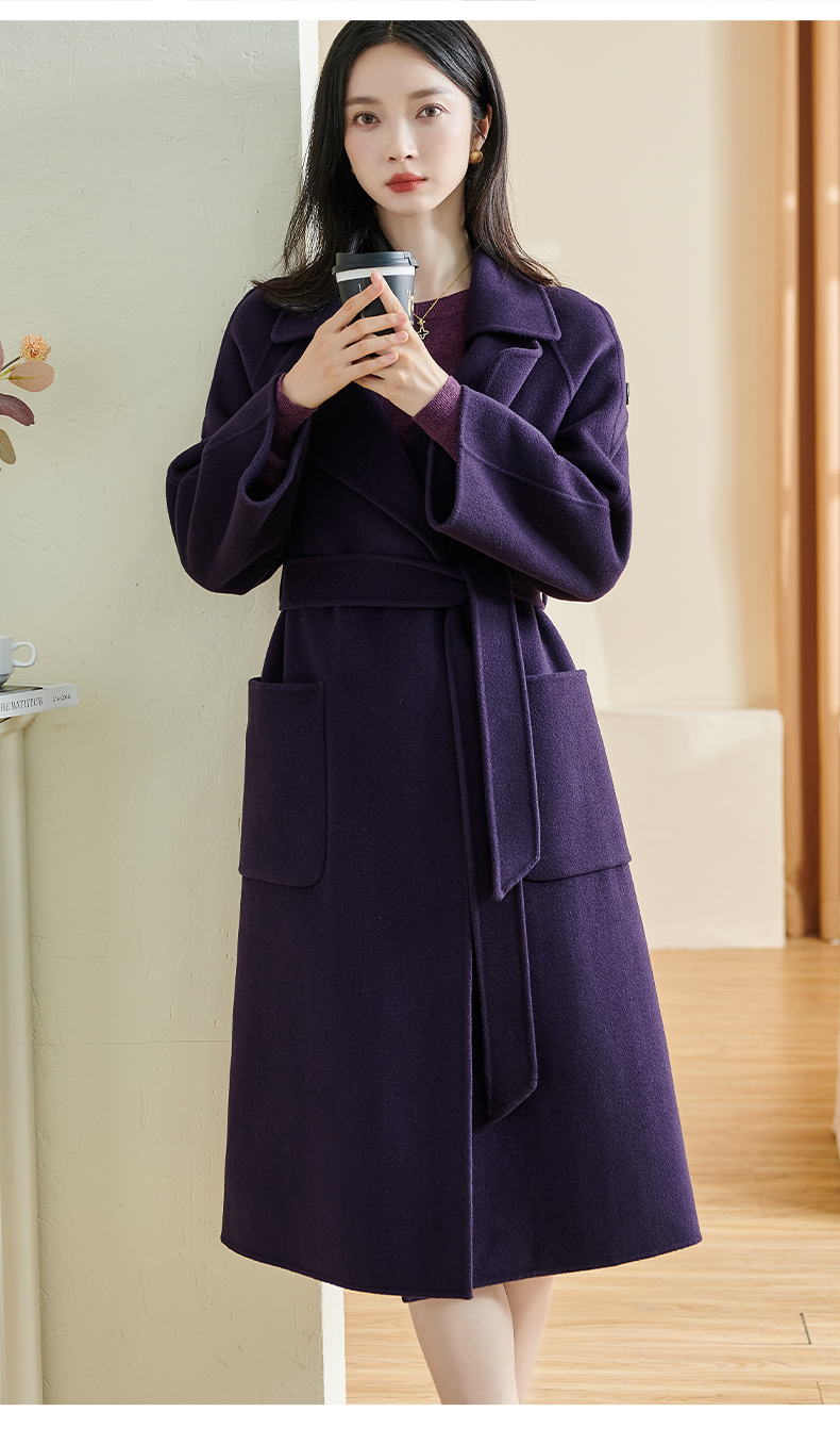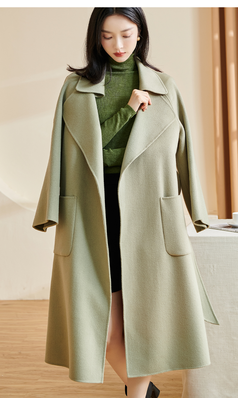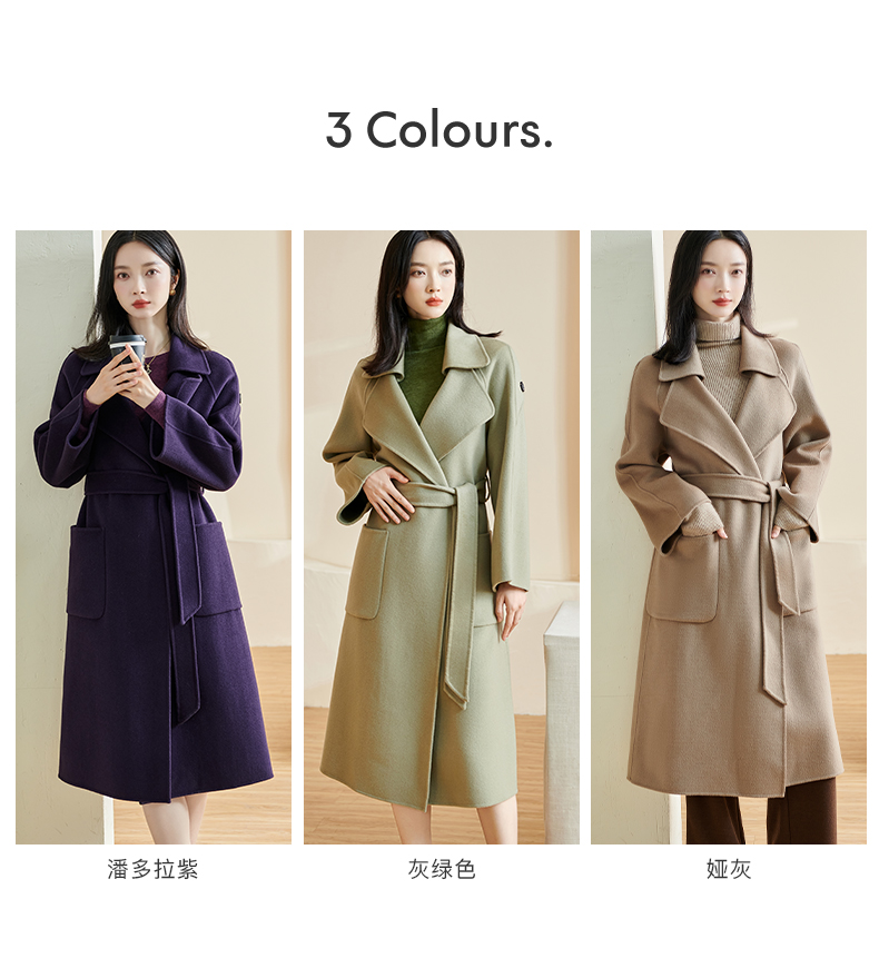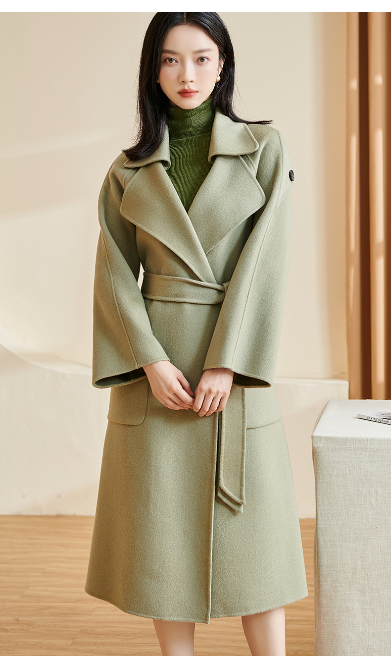 剩L 米思阳冬季新款简约高端100%羊毛双面呢毛呢大衣长款外套女厚1227