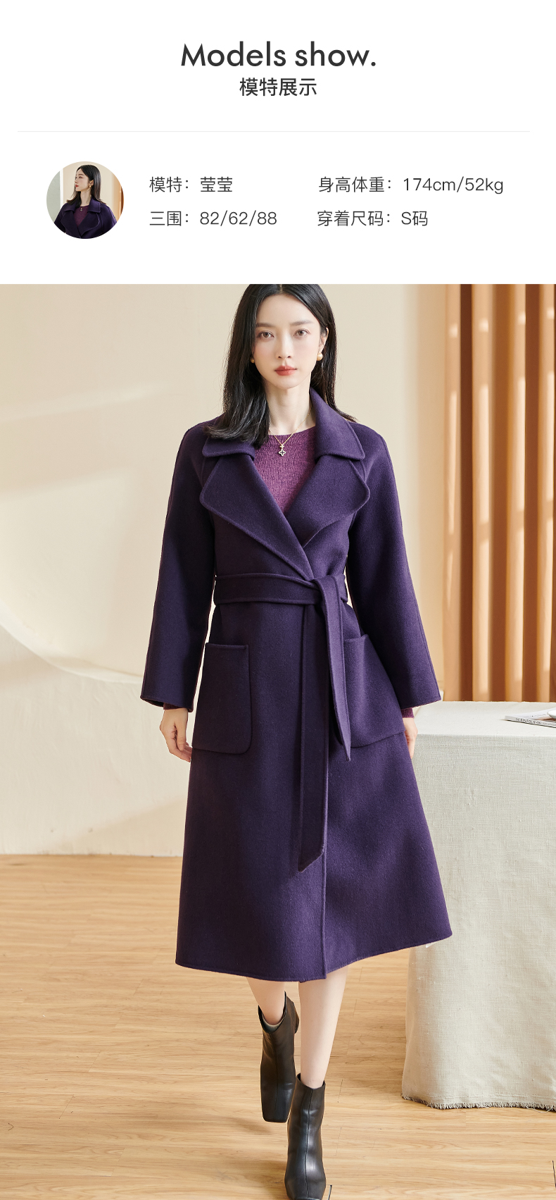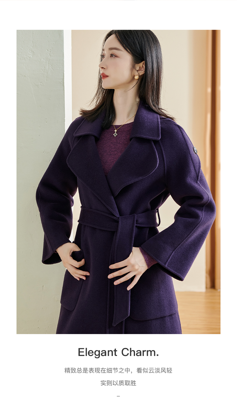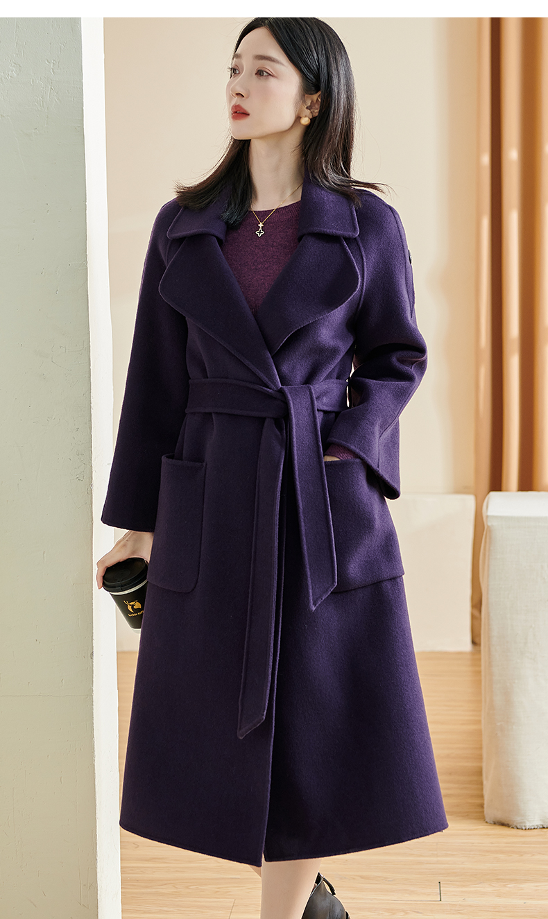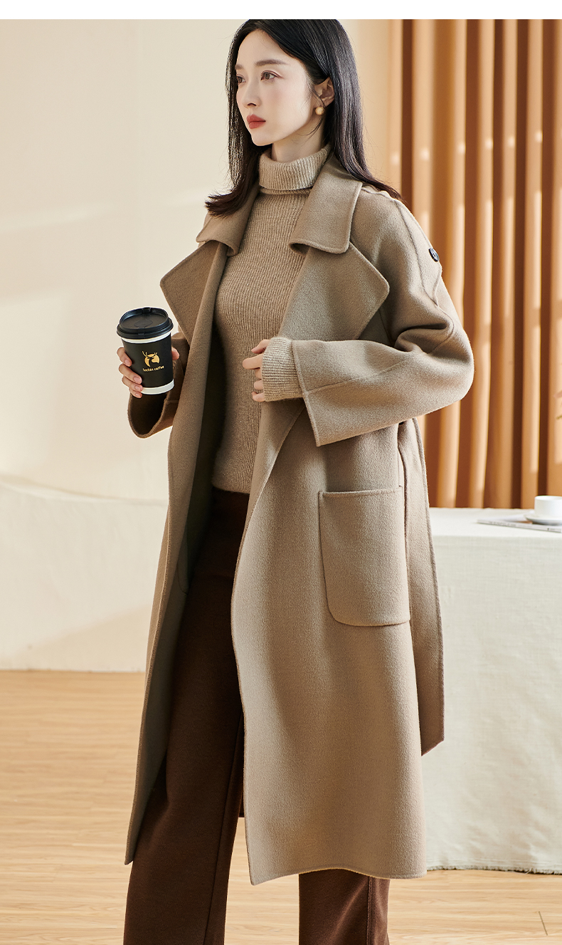 剩L 米思阳冬季新款简约高端100%羊毛双面呢毛呢大衣长款外套女厚1227
