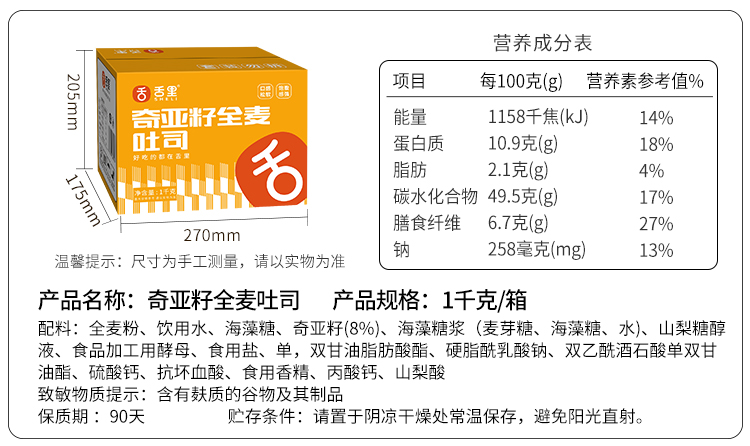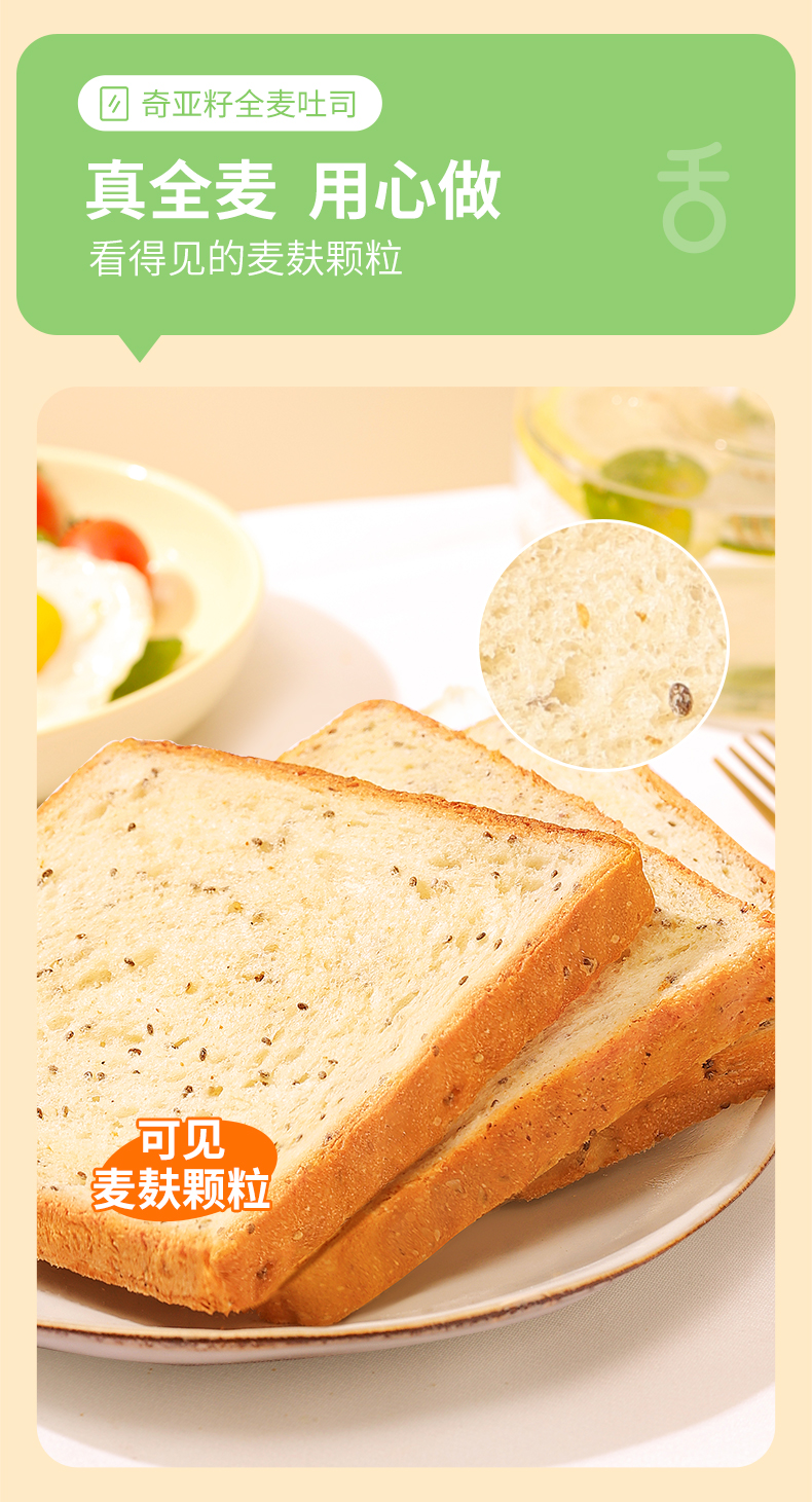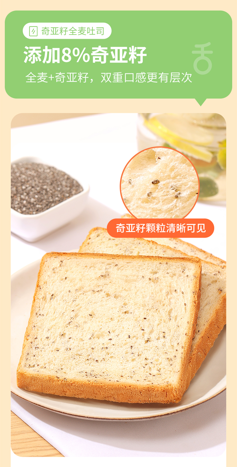 限时折扣【舌里奇亚籽全麦吐司1000g】 独立包装 开袋即食 一箱约20小袋