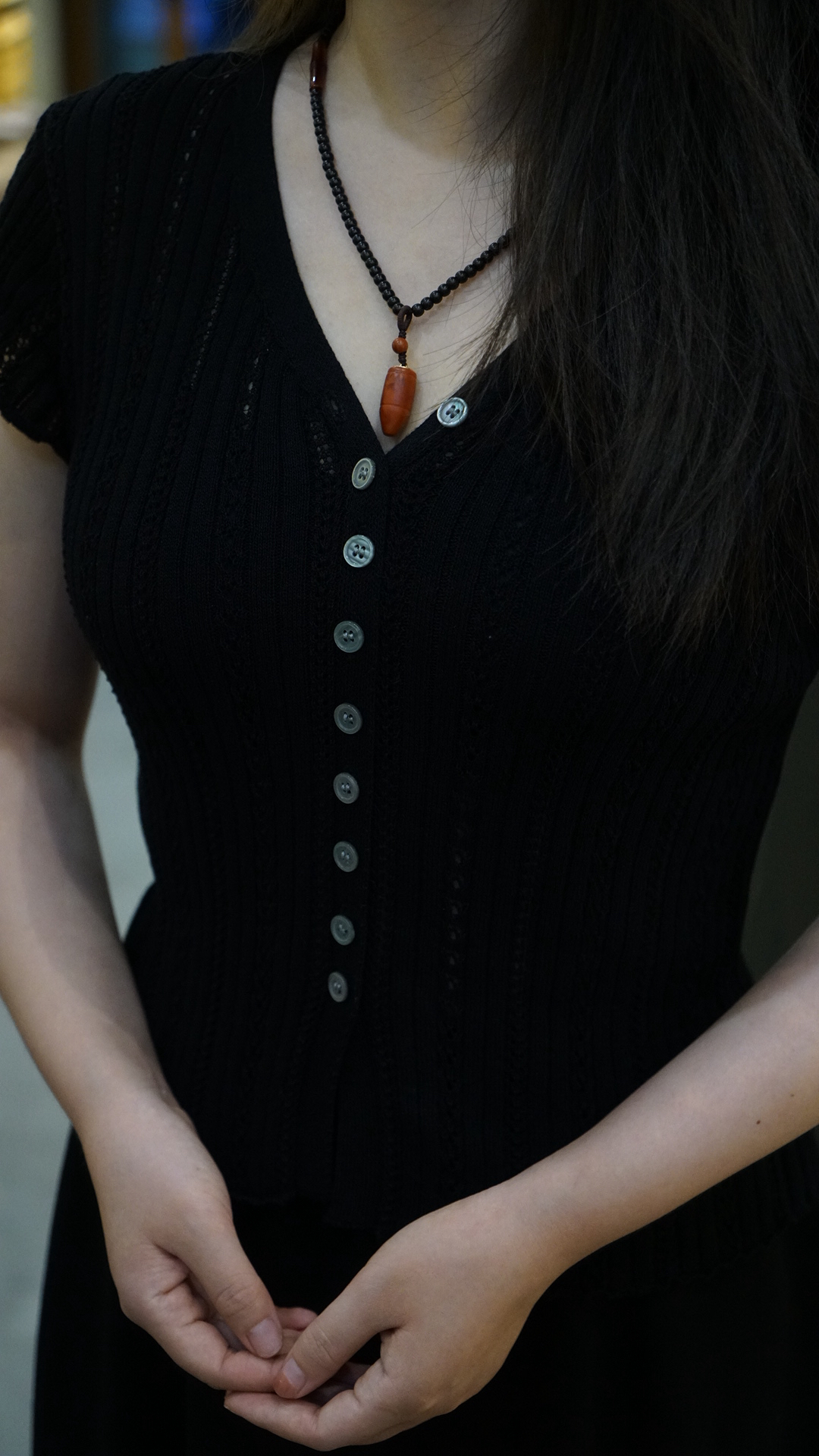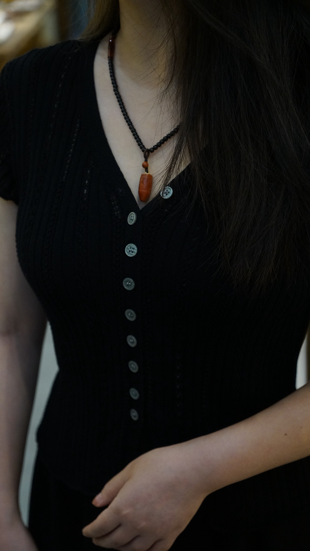 18k金镶嵌满色满肉南红玛瑙"子弹头"~柿子红玫瑰红交织~饱满可爱~全球唯一嘿嘿嘿~