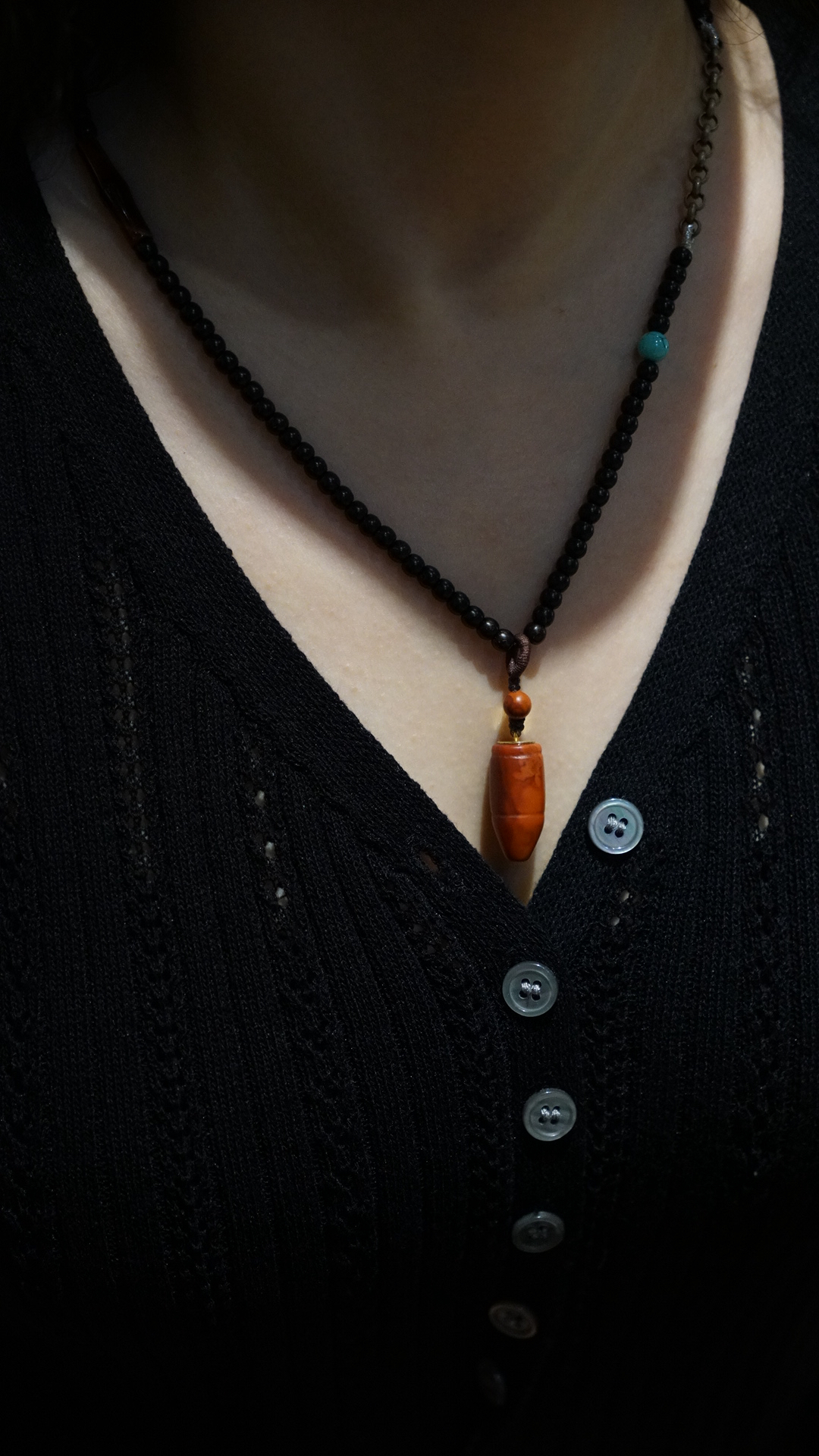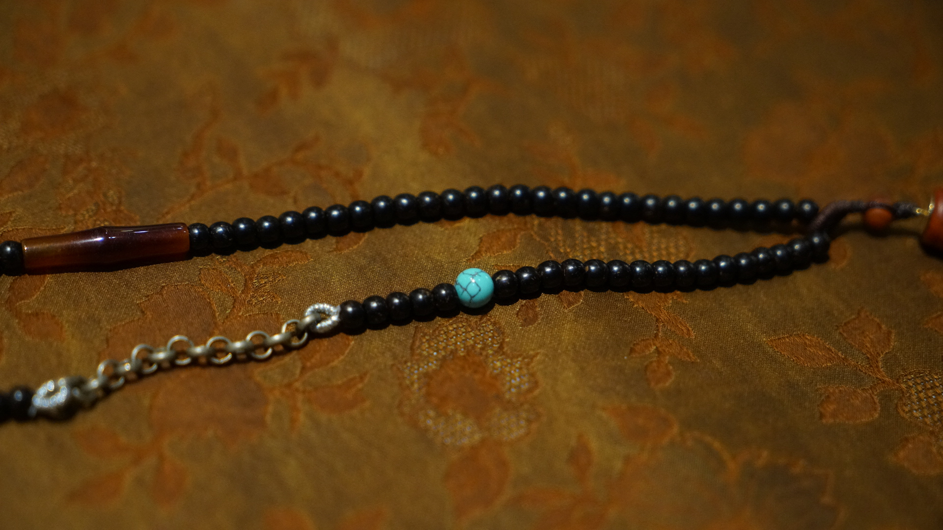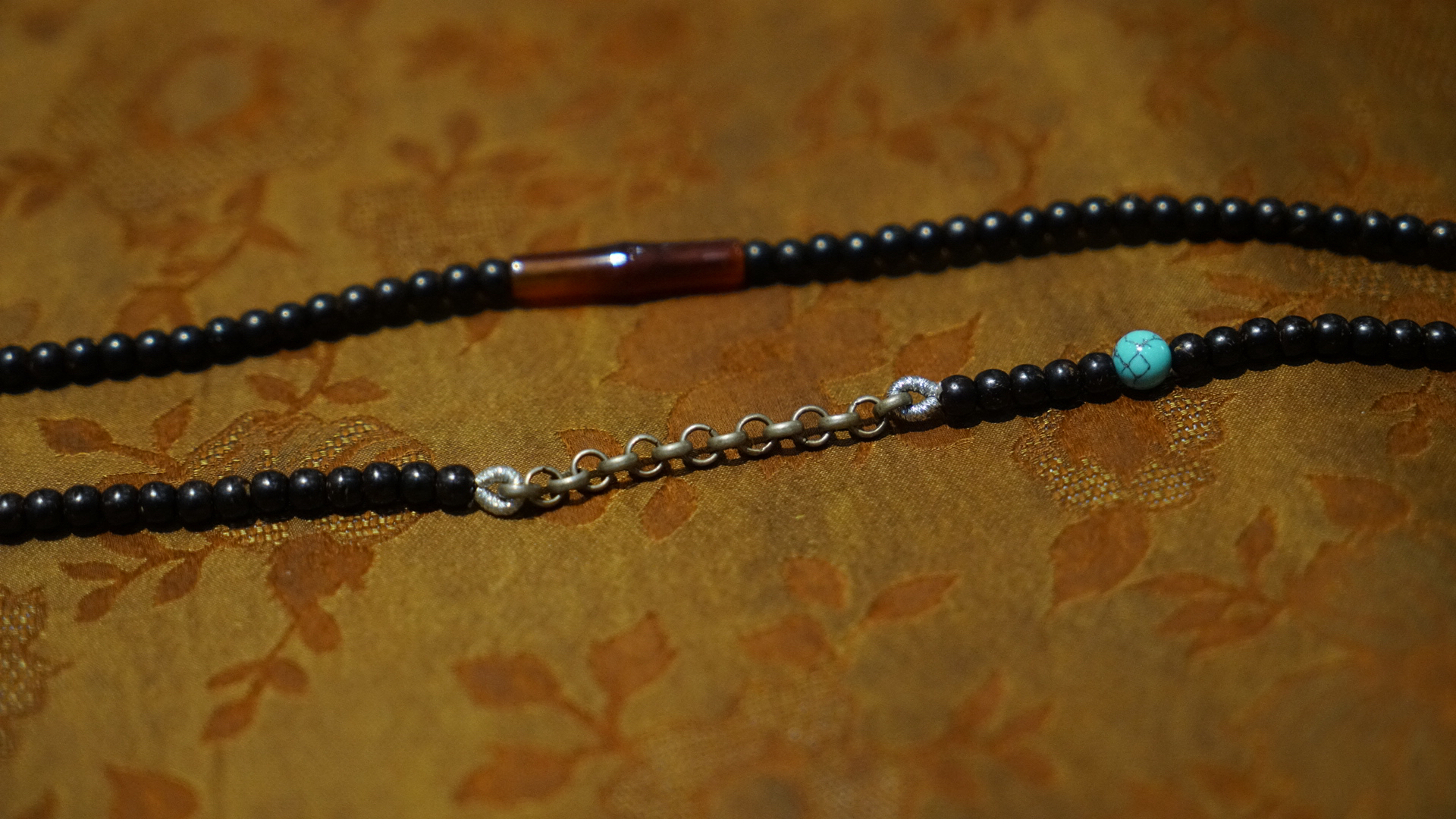 椰蒂链子,西亚玛瑙管点缀,银链的酷,绿松的亮眼,整体帅气又有特色。太炫酷啦!