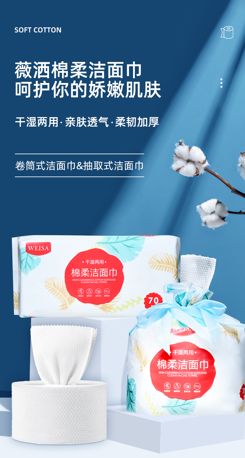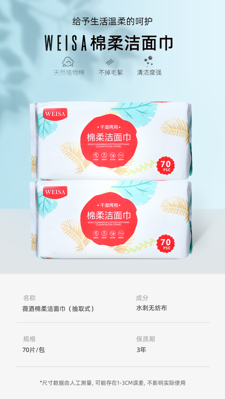 WEISA薇洒棉柔洁面巾洗脸巾(70片)新升级