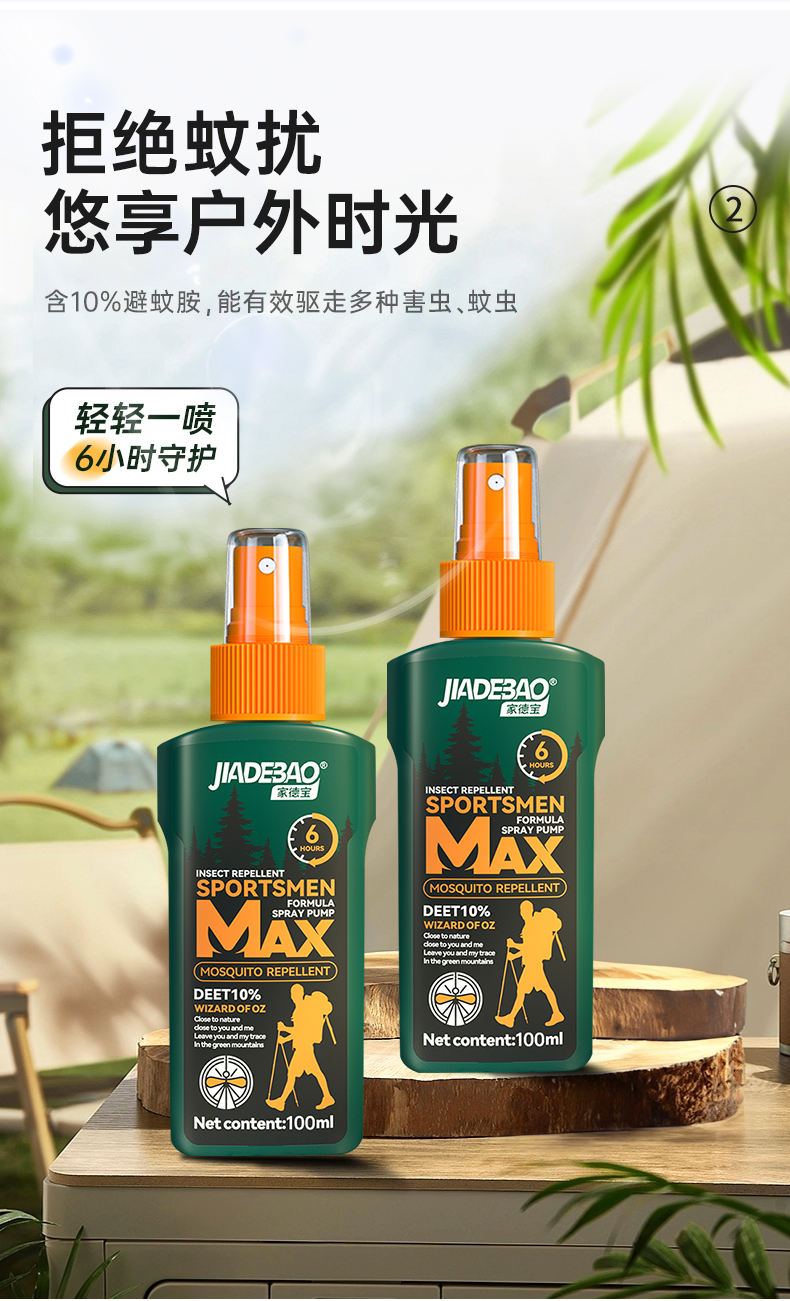 家德宝驱蚊喷雾户外驱蚊水驱虫防蚊液神器蚊虫花露水100ML(10%避蚊胺)