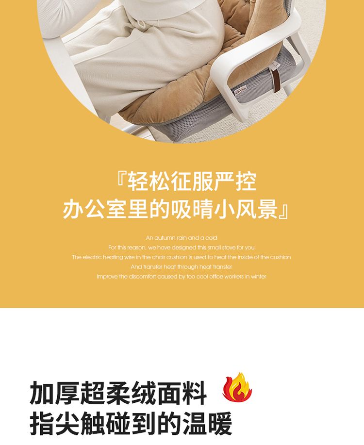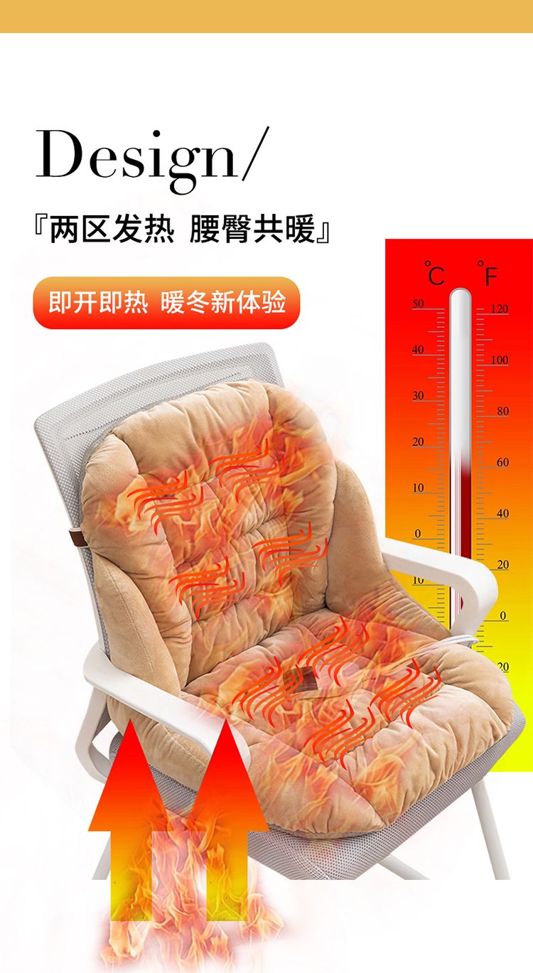 加热坐垫靠背一体办公室座椅垫电发热椅子靠垫久坐连体腰靠冬季
