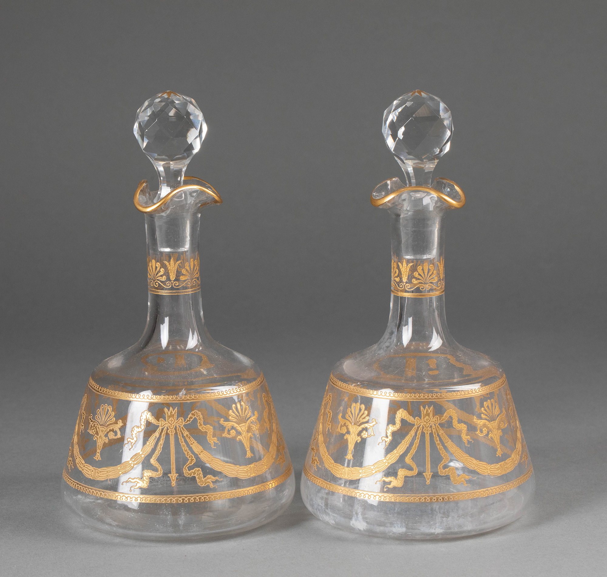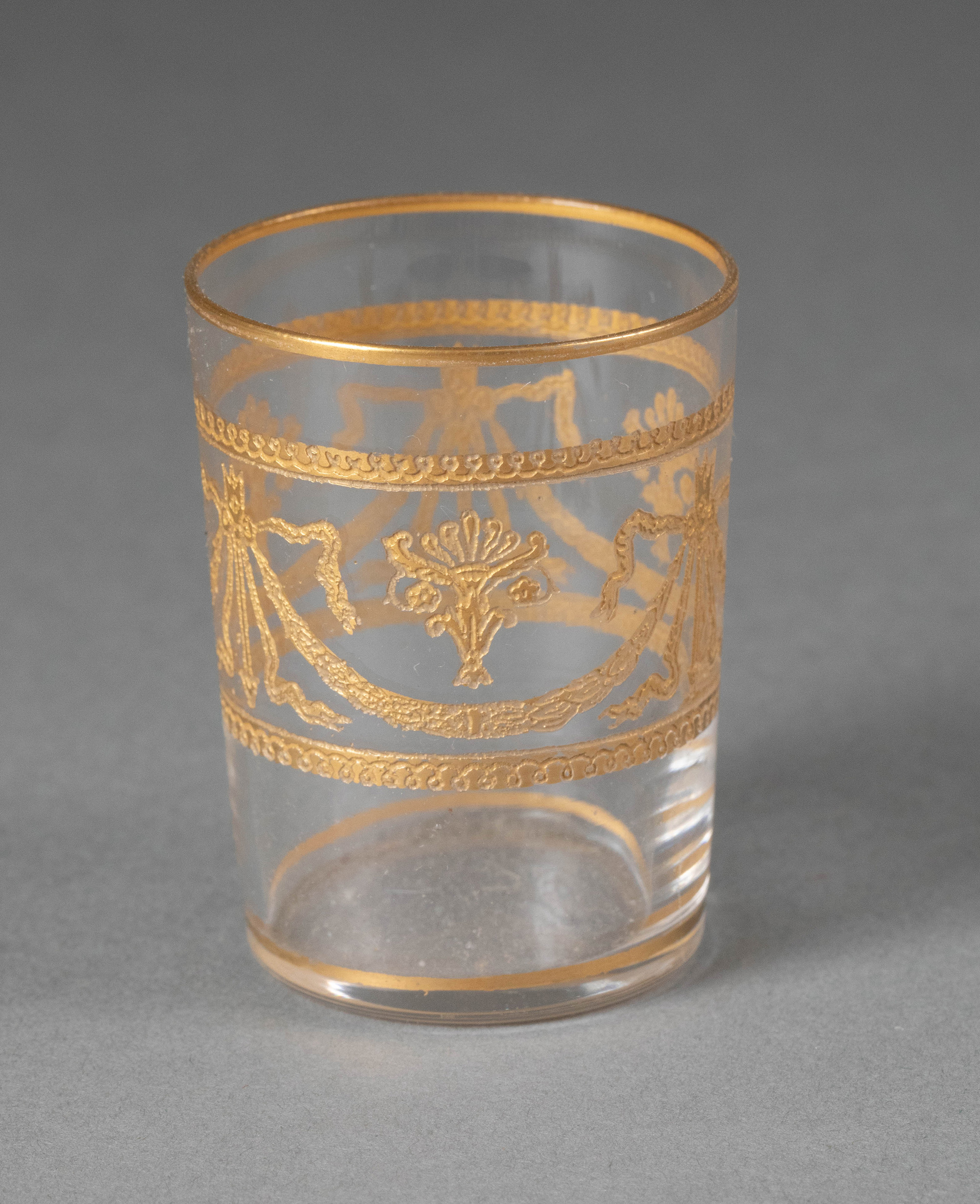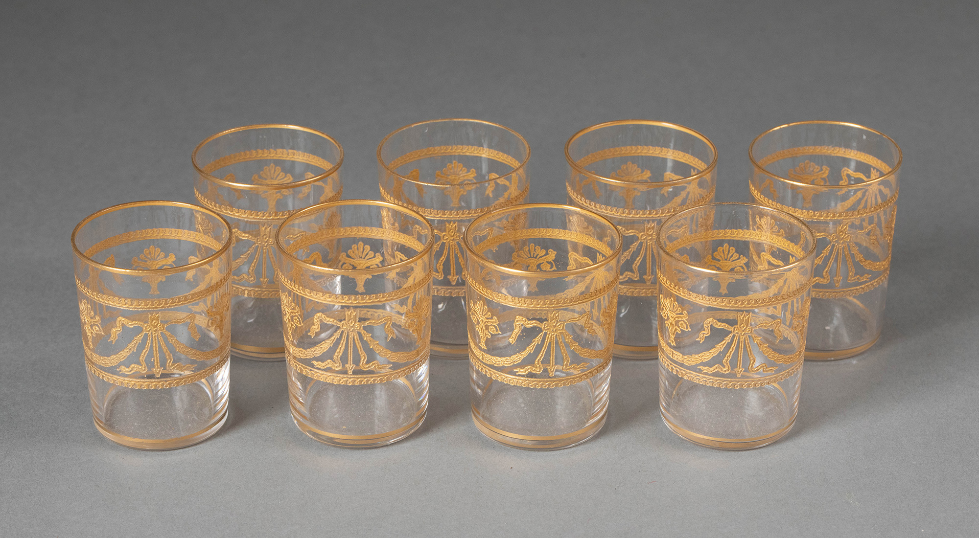 19世纪末20世纪初法国著名水晶工坊圣路易出品24K描金修饰Congress花纹款精雕水晶酒具套件