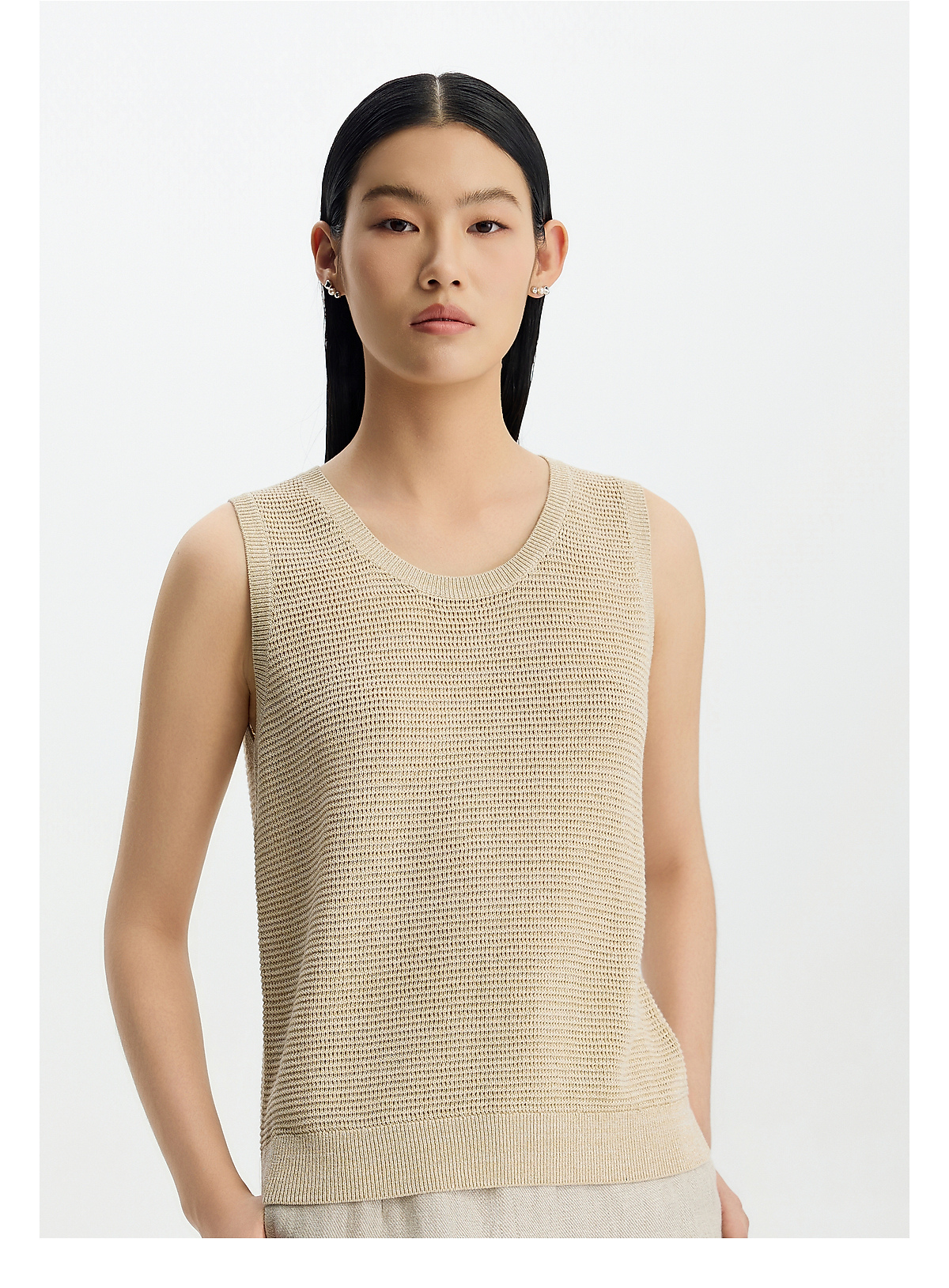商场同款PURE TOUCH女装26春夏新款无袖T恤圆领针织细闪短袖上衣