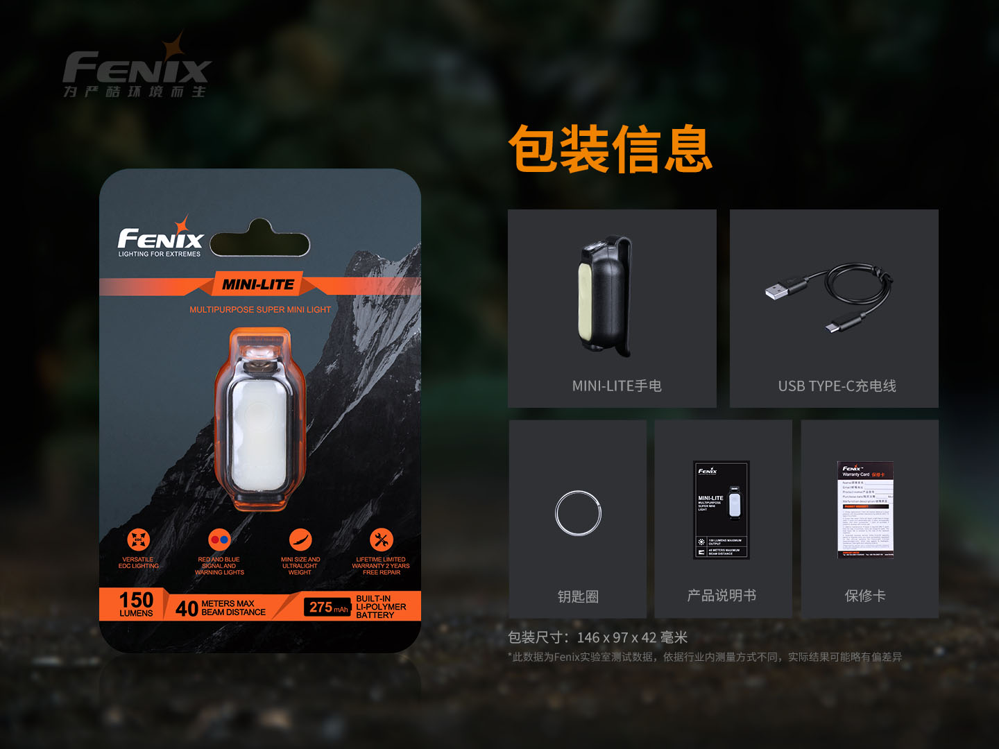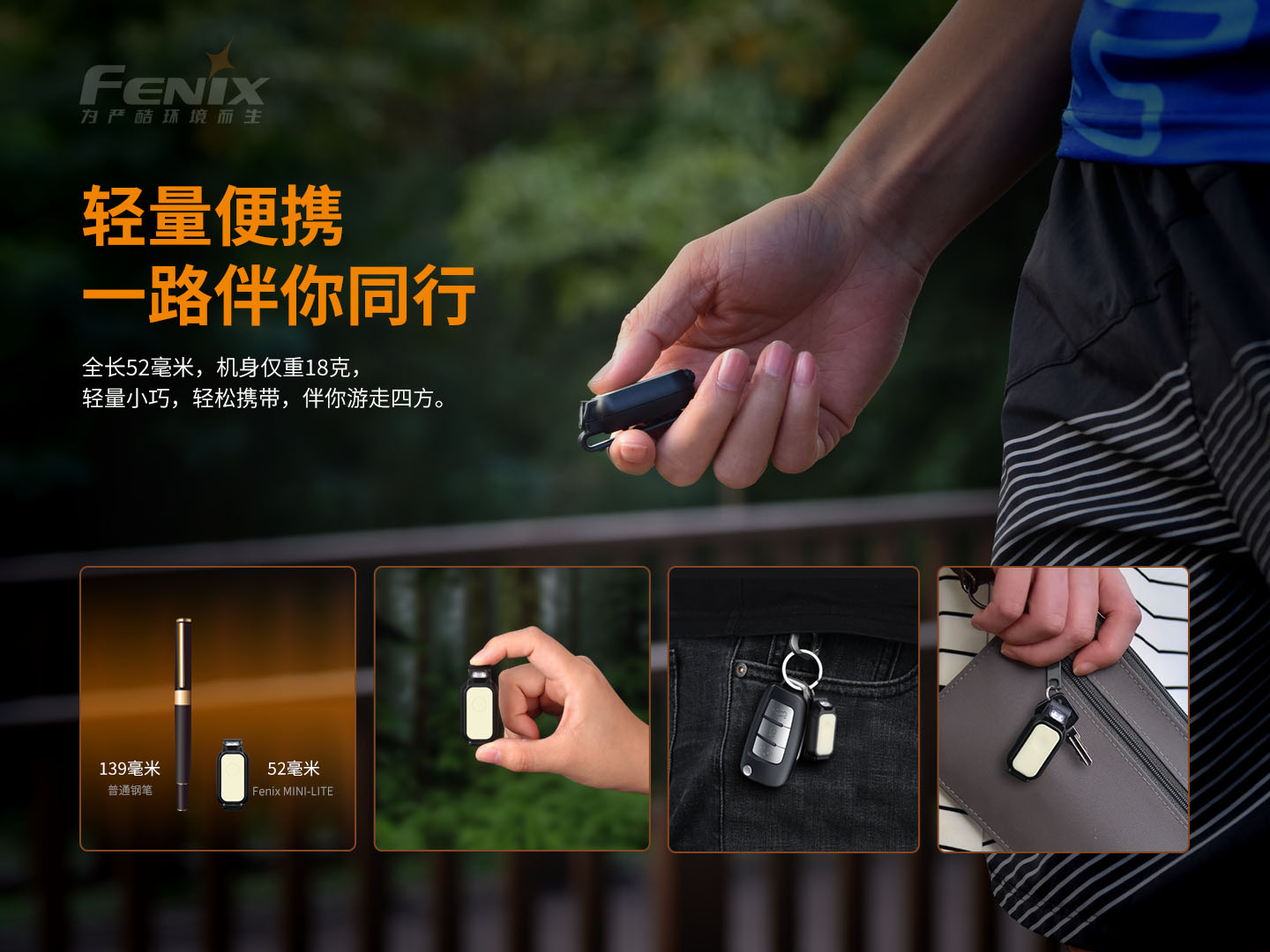 Fenix菲尼克斯MINI-LITE迷你强光小手电筒USB充电LED钥匙扣多功能EDC