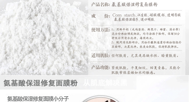 【成膜性强 修复防敏 不起白边 不粘碗】特级氨基酸保湿修复面膜粉 1kg