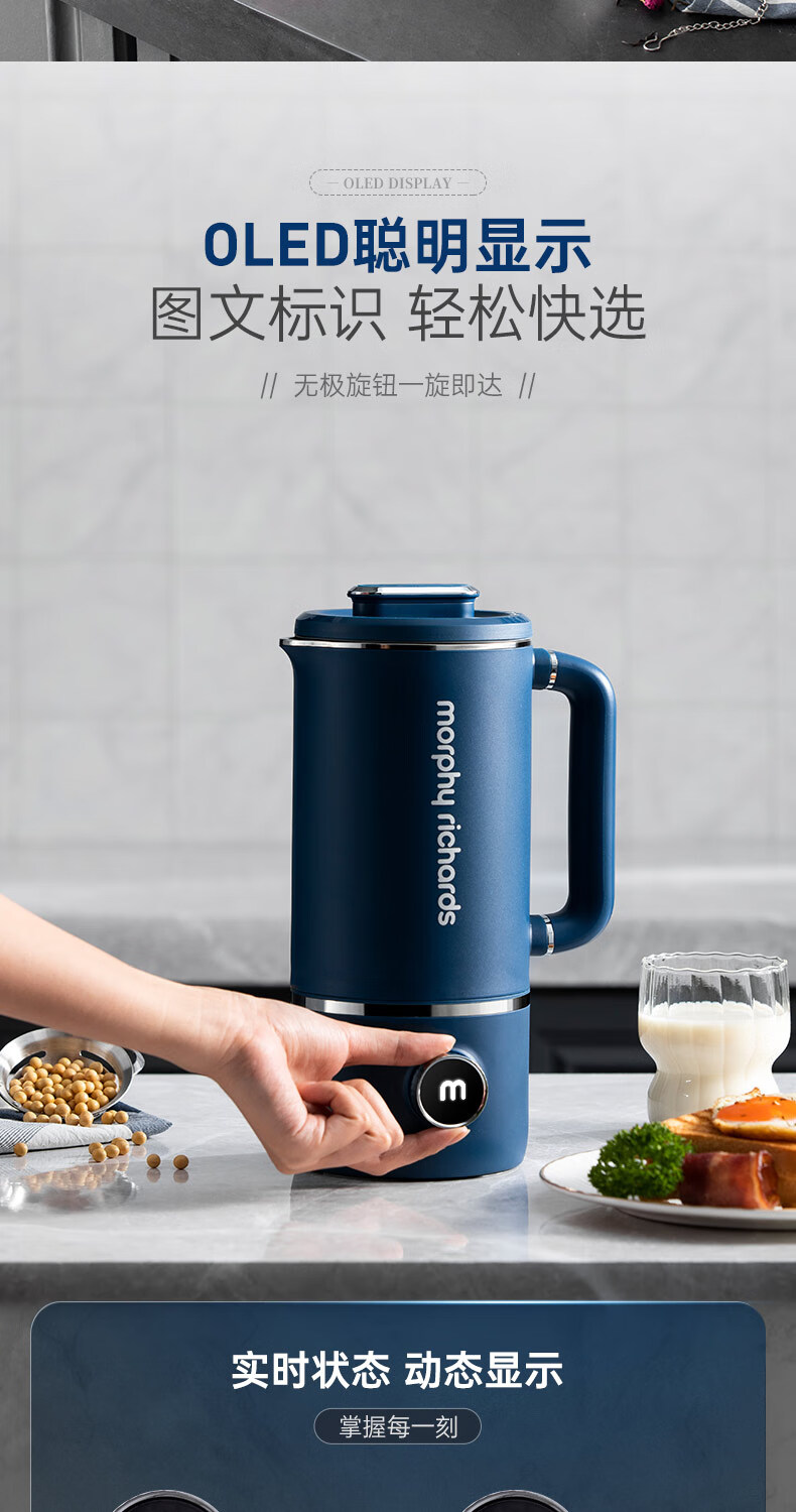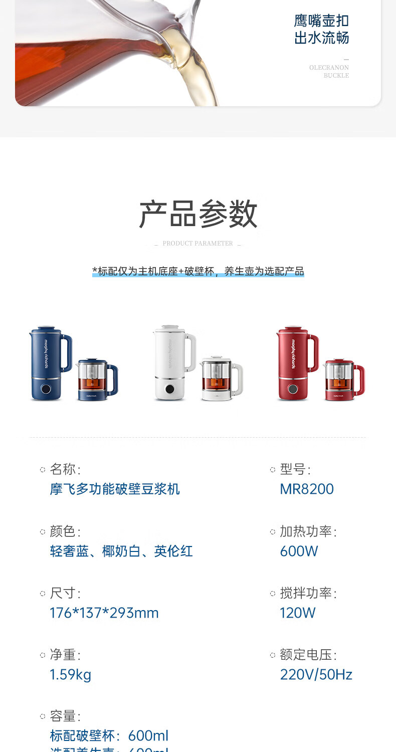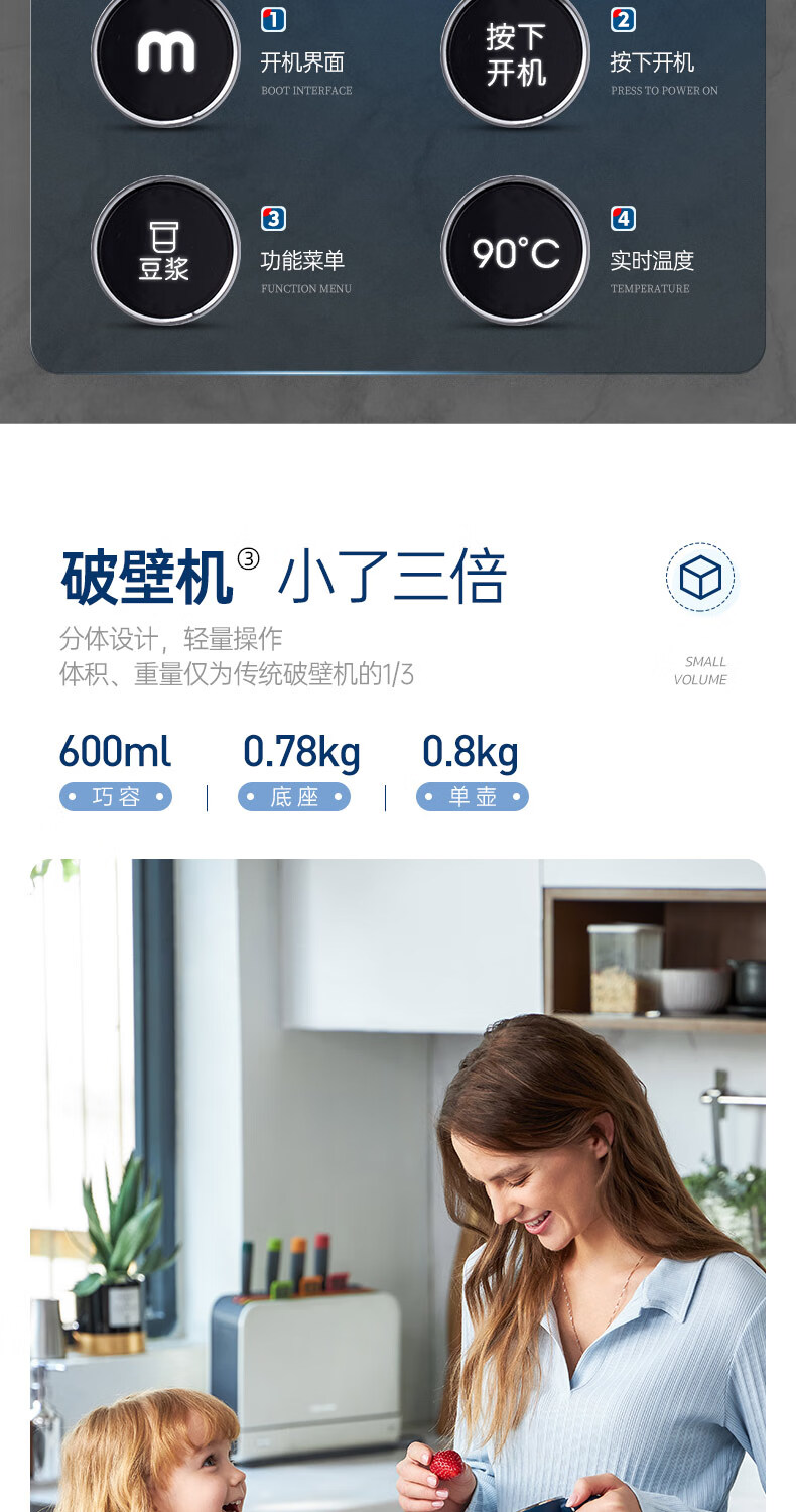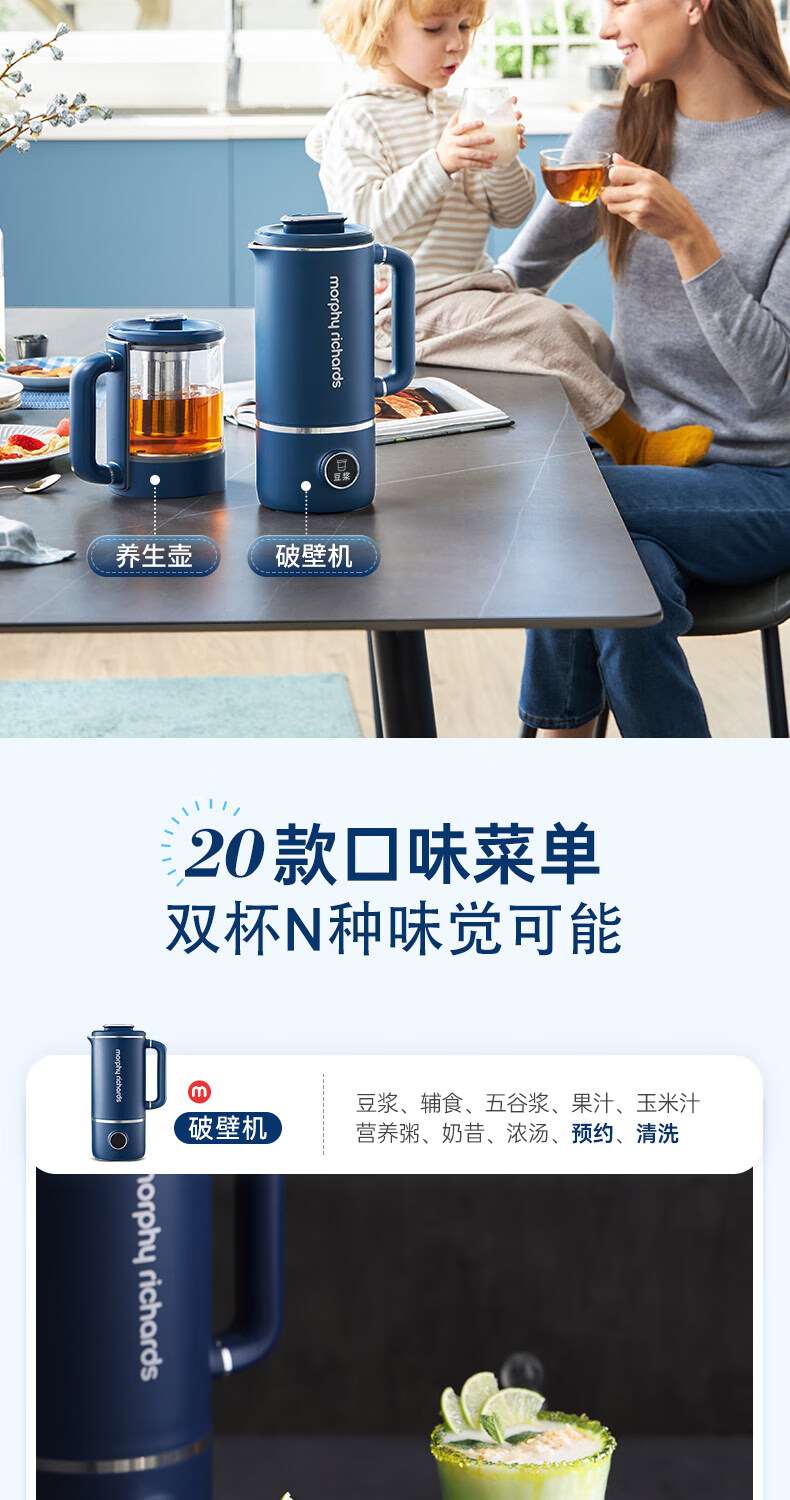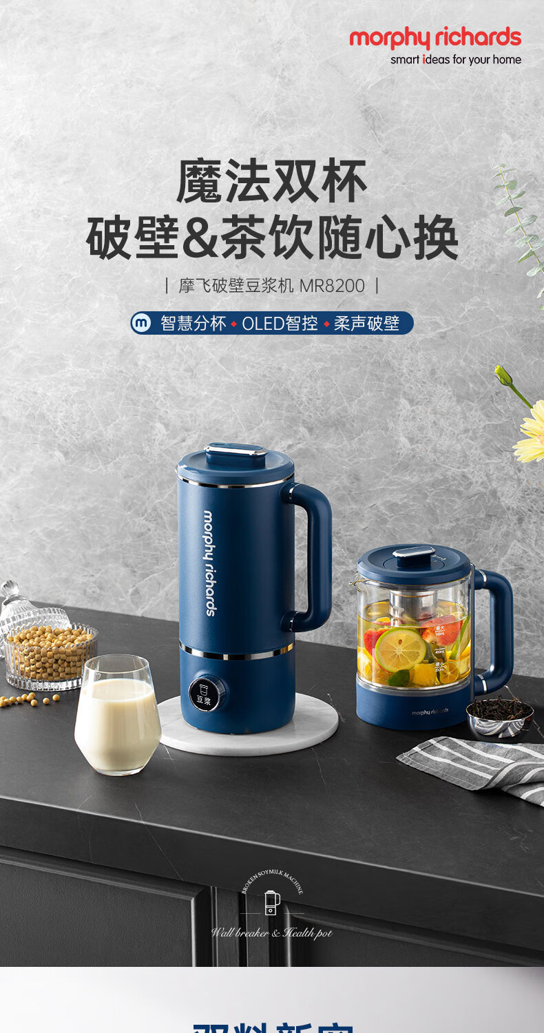 摩飞电器 家用破壁机 全自动清洗免过滤 600ml MR8200 蓝色