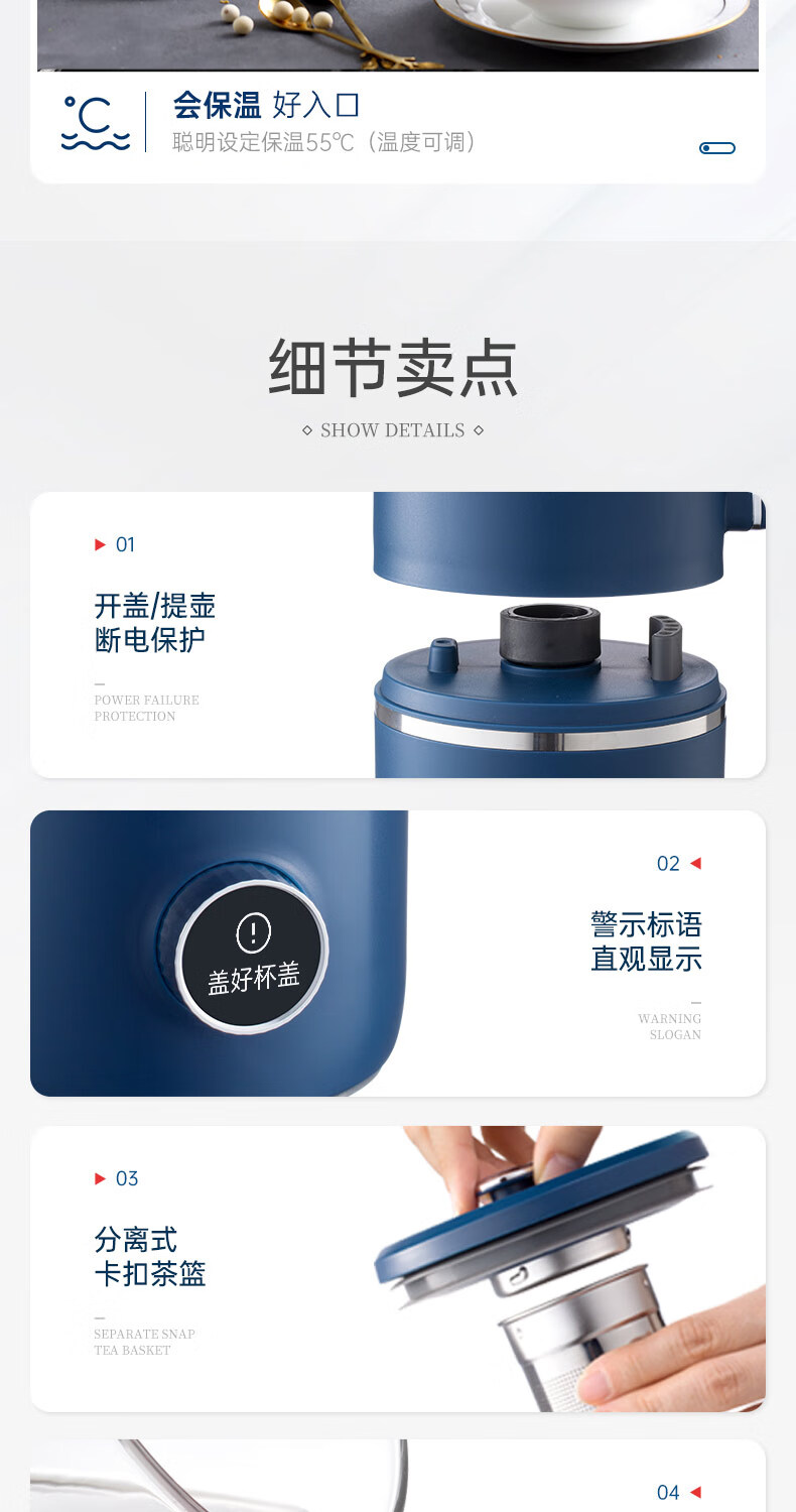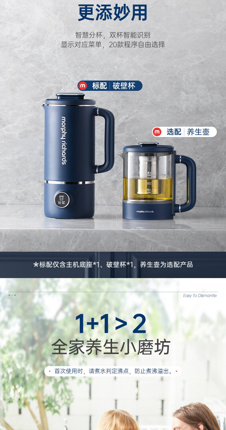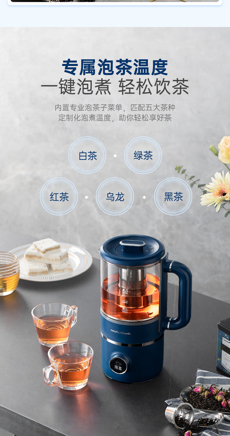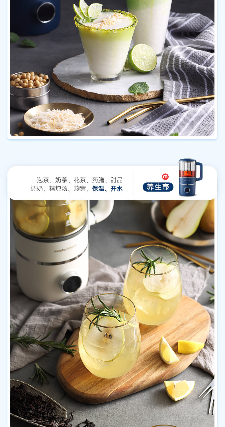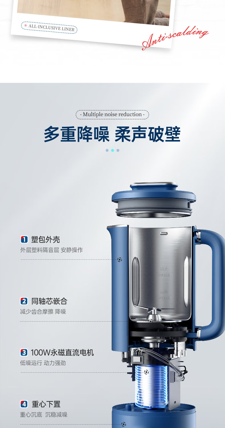 摩飞电器 家用破壁机 全自动清洗免过滤 600ml MR8200 蓝色