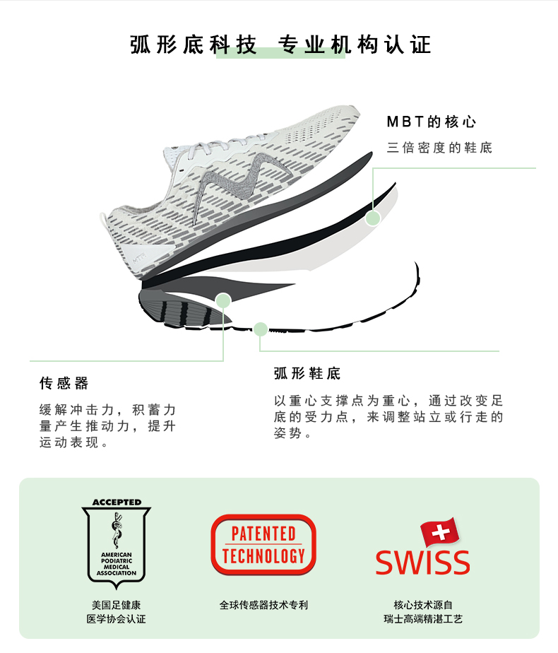 MBT足健康鞋男厚底足弓支撑健康跑步鞋 缓解足跟压力反光缓震1500