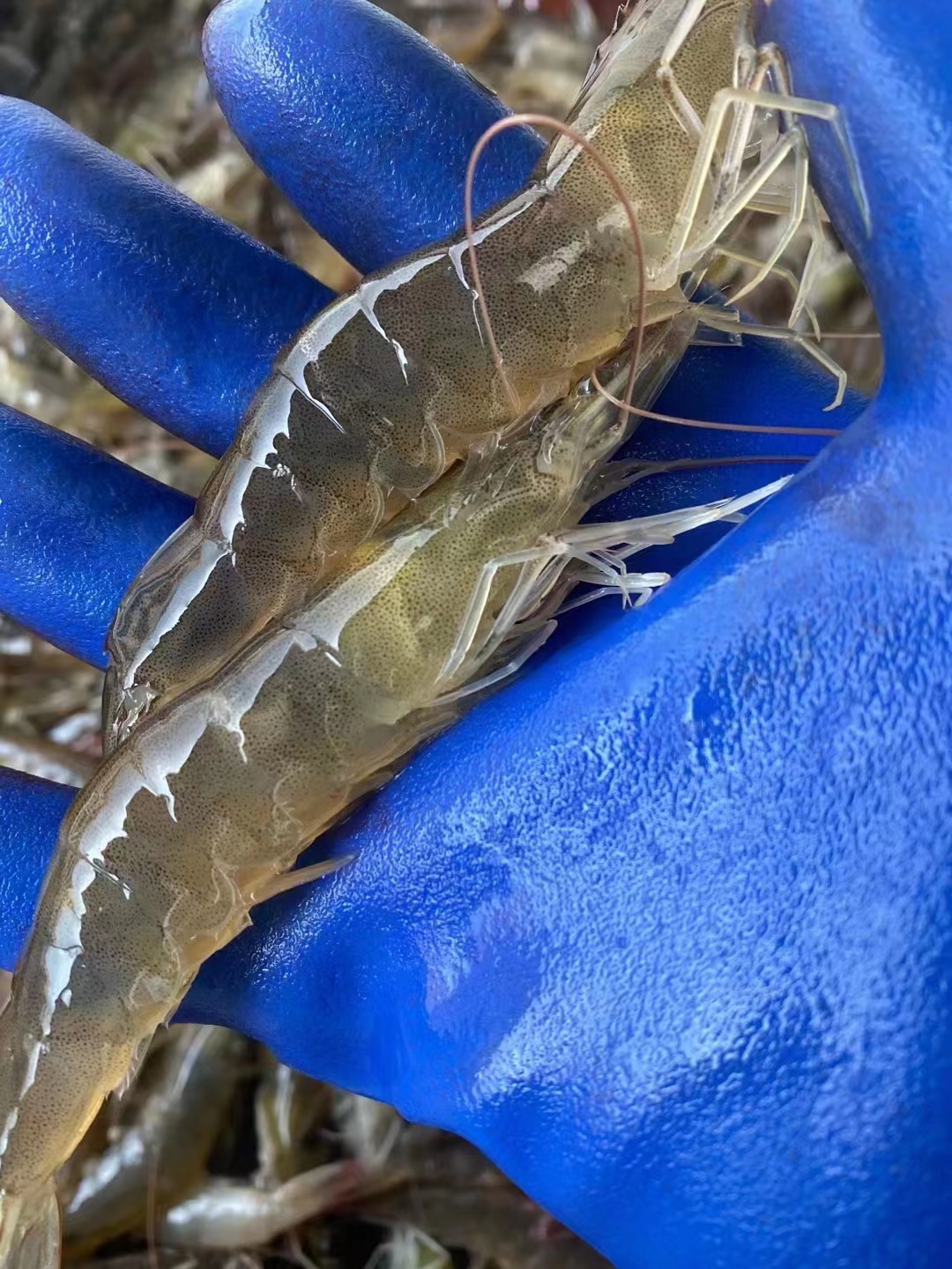 【关于虾的颜色】:大头的黑皮虾,由于生长滩底不一样,所以虾不是黢黑黢黑的哈,绝对是正宗复州湾盐场的高盐度海虾