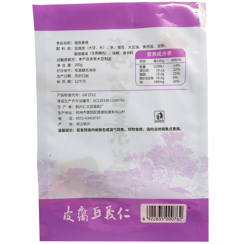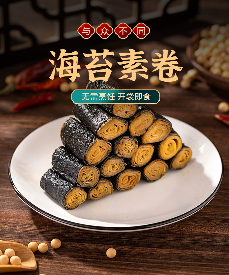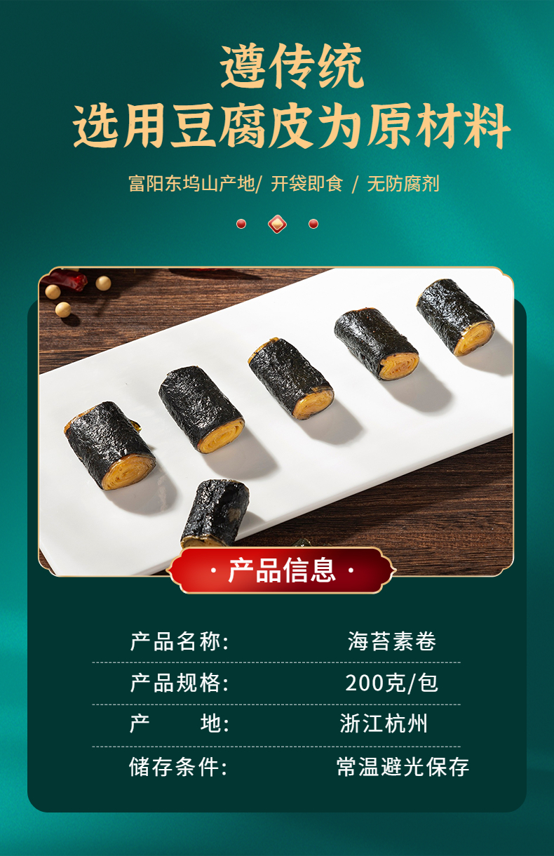 杭州特产纯素食即食豆制品海苔素卷寺院斋菜无五辛开袋即食真空装