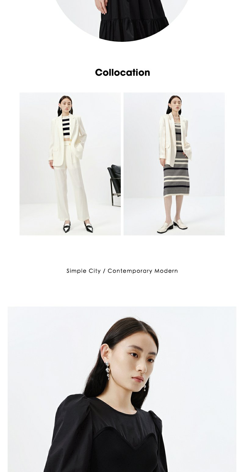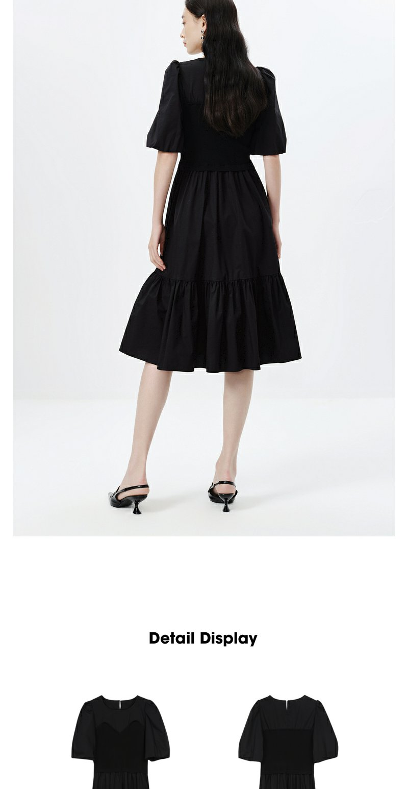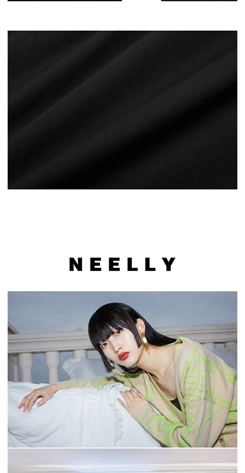 NEELLY纳俪商场同款圆领春季黑色法式连衣裙女针织拼接A字大摆裙N23031Y01153