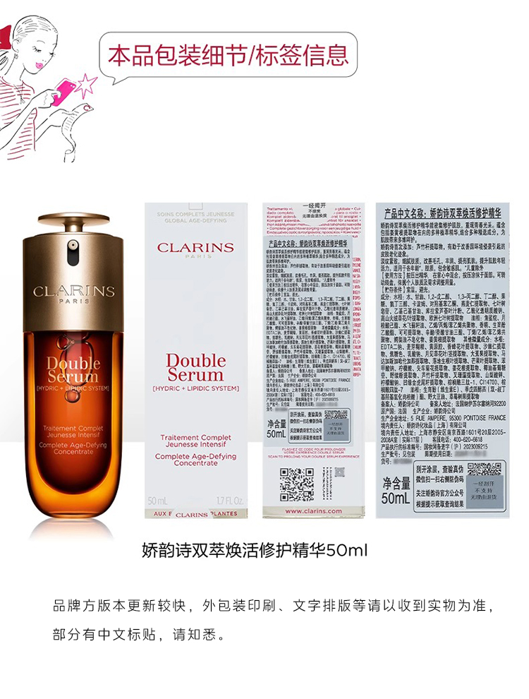 【无盒】娇韵诗新款第九代双萃焕活修护精华露50ml 保湿紧致 新日期