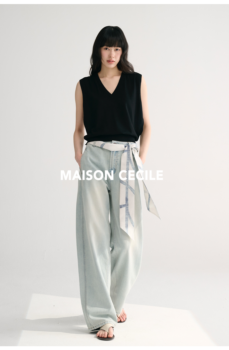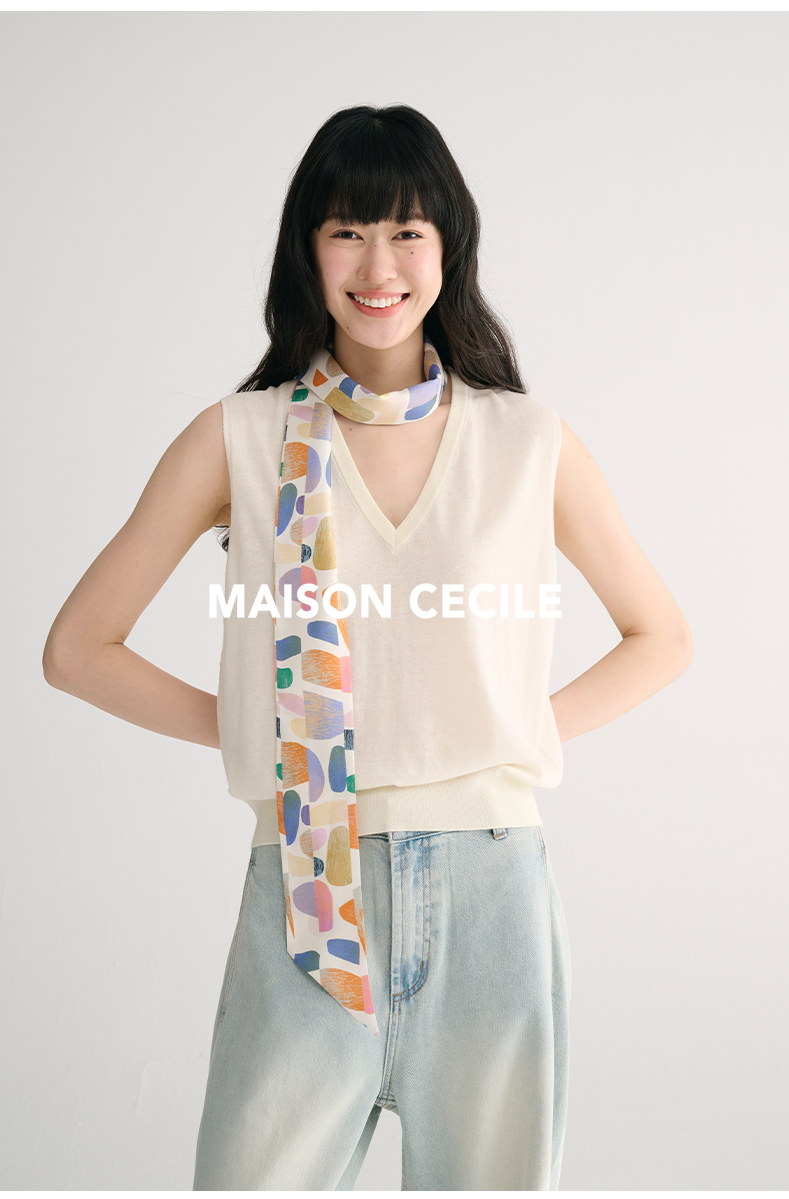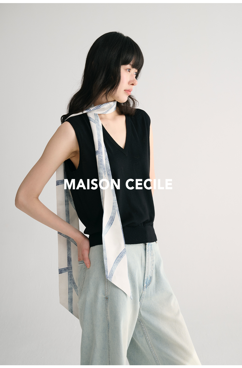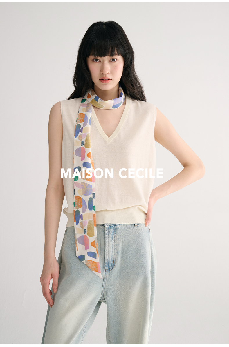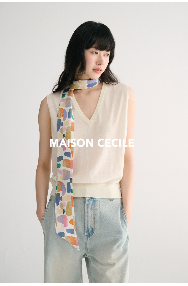 MAISON CECILE 独家定制图案/桑蚕丝双层印花多用途长款飘带/腰带