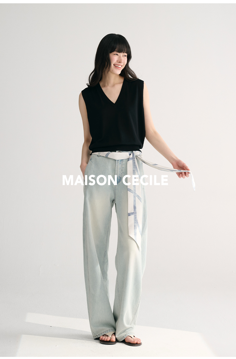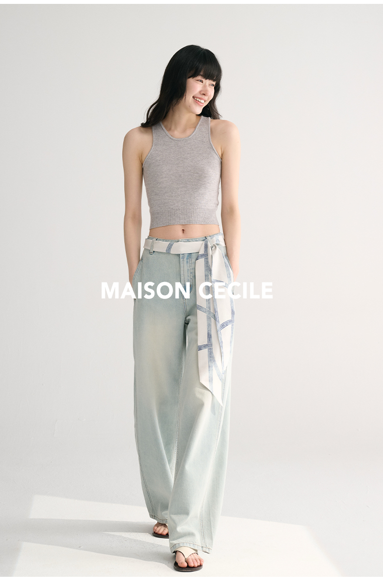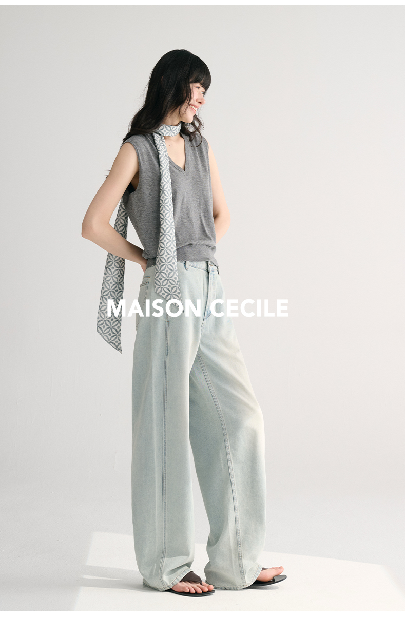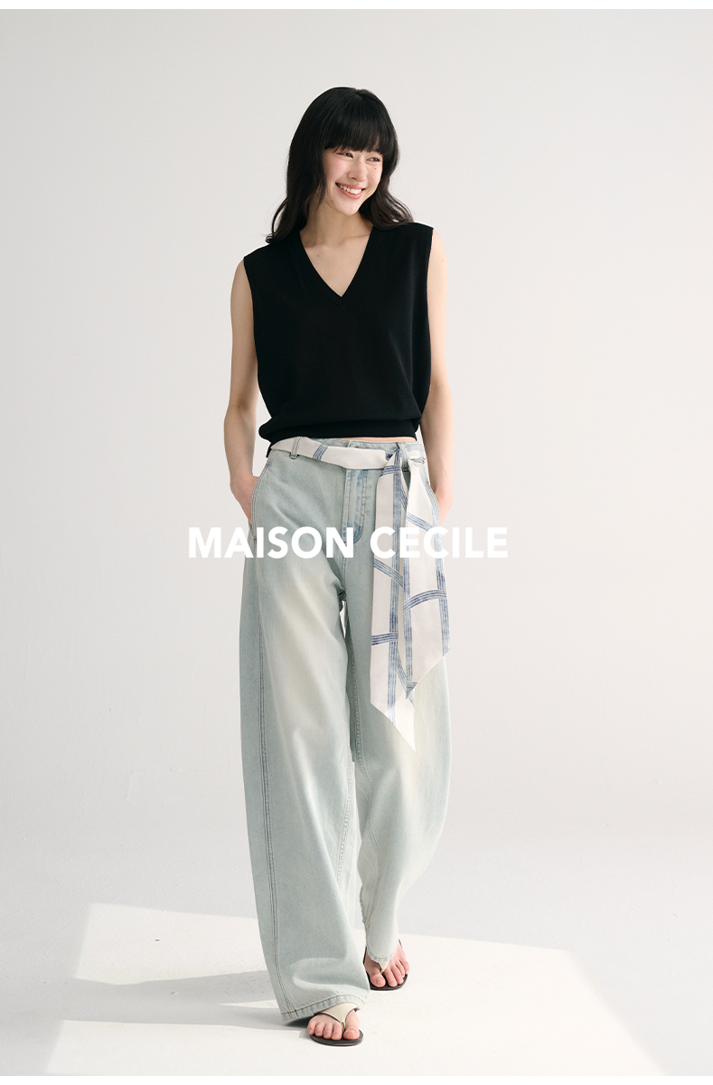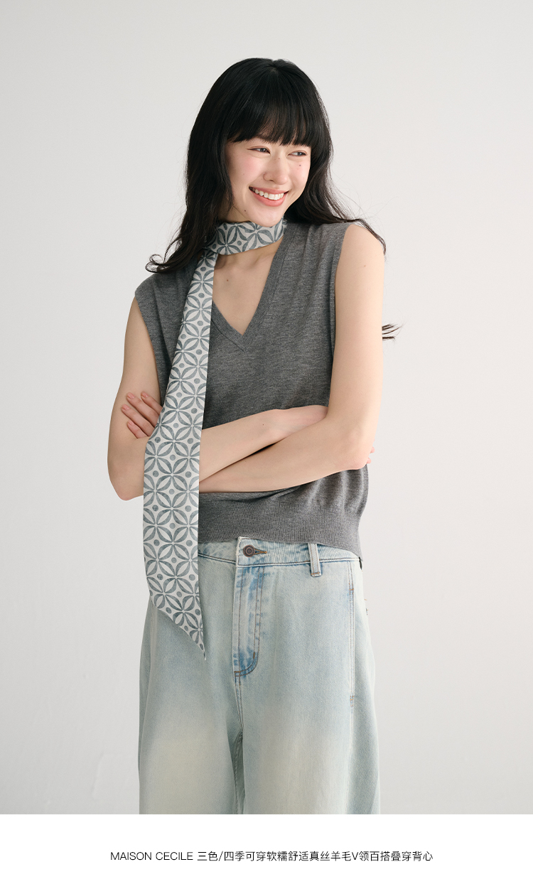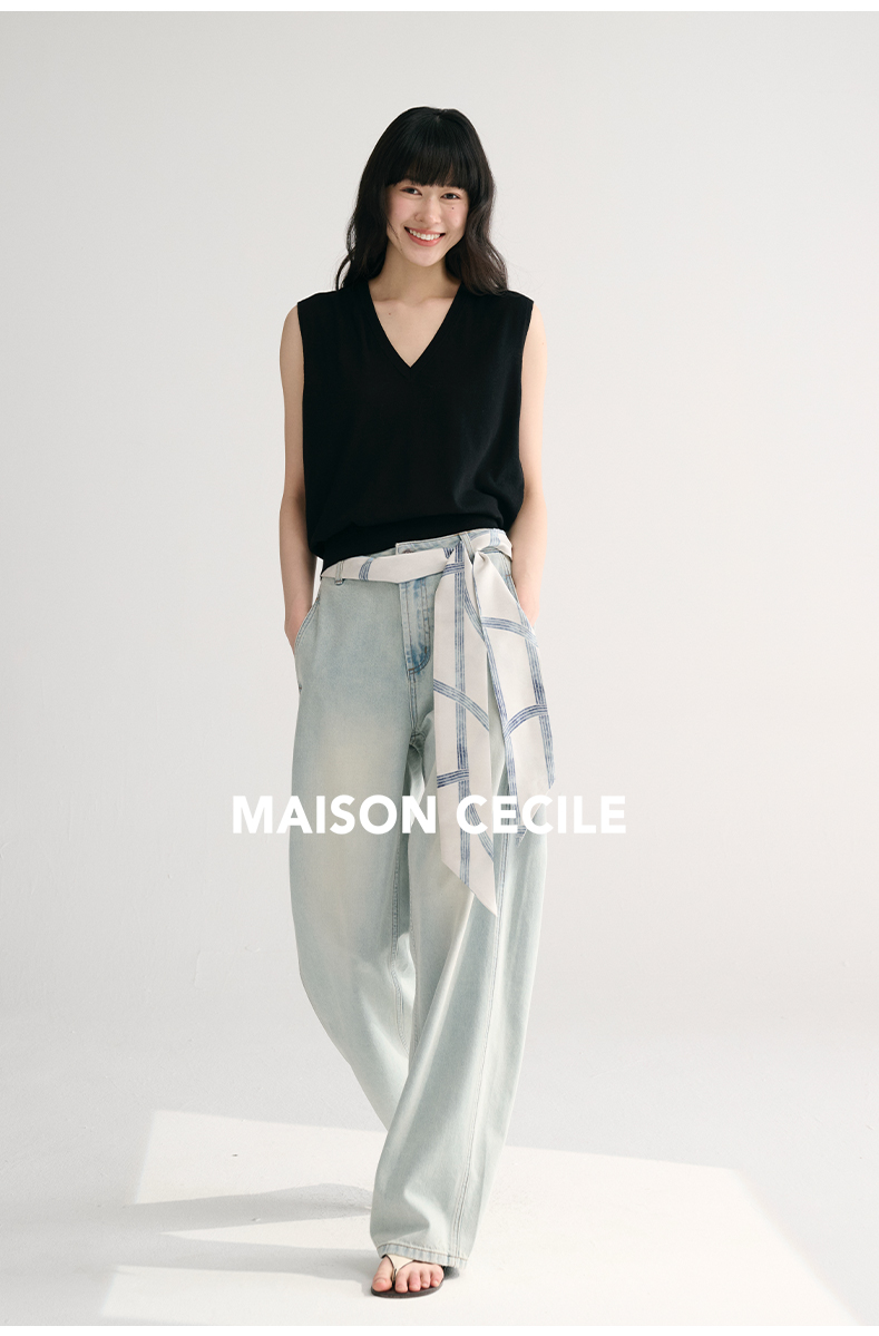 MAISON CECILE 独家定制图案/桑蚕丝双层印花多用途长款飘带/腰带