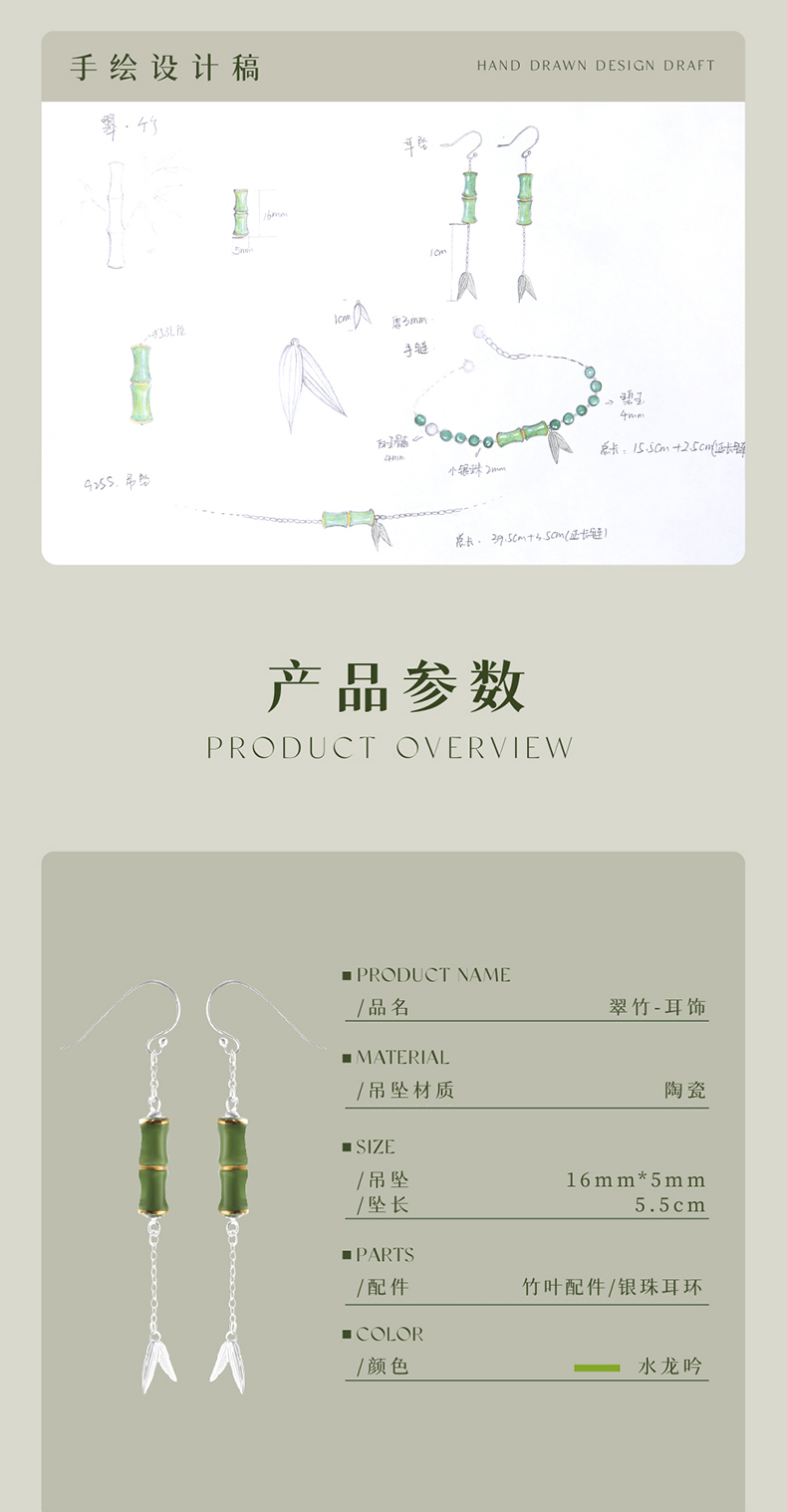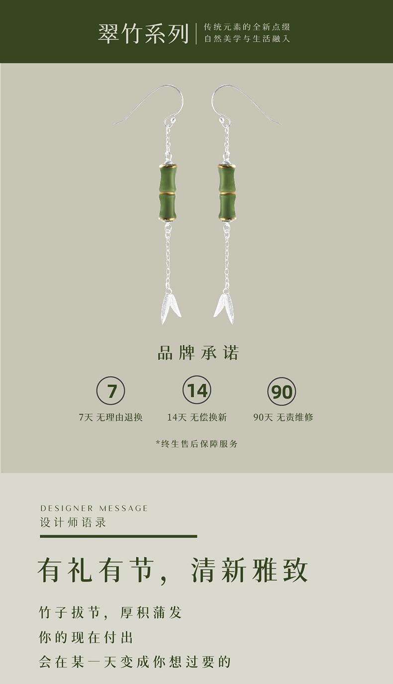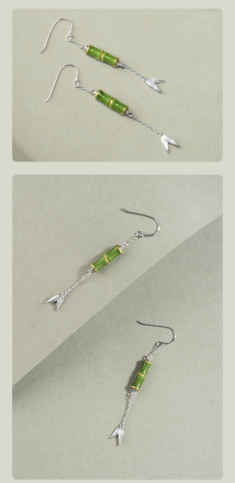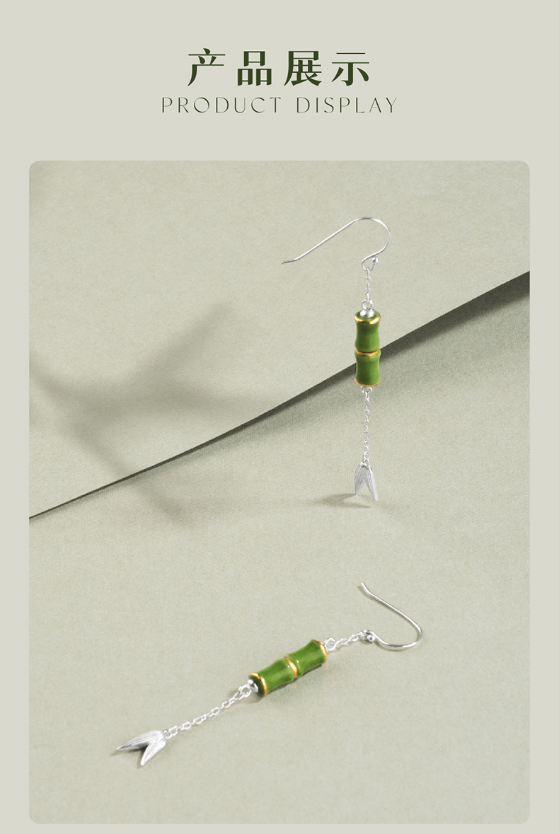 凡华造物翠竹925银耳钉女小众设计耳环轻奢气质耳线高级感耳饰 翠竹925银耳环